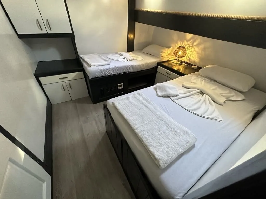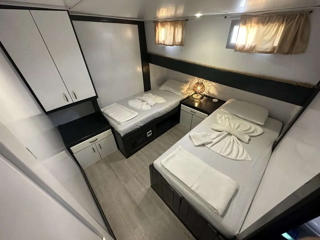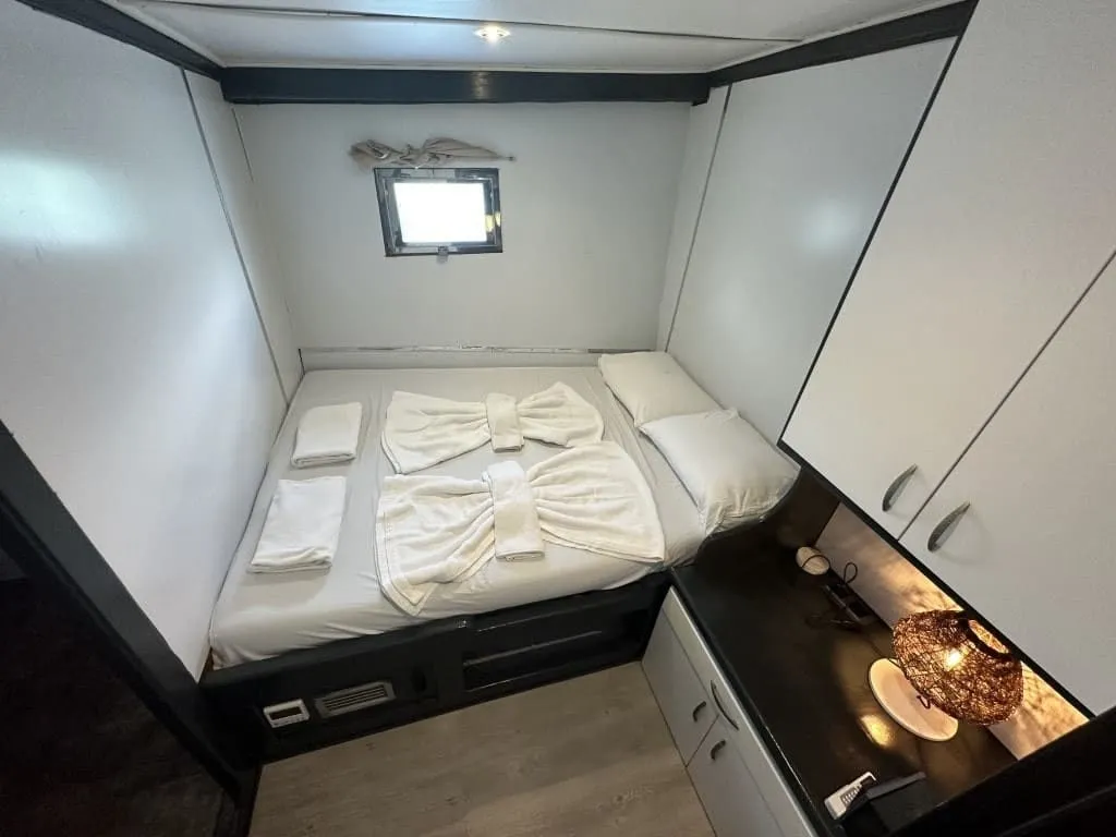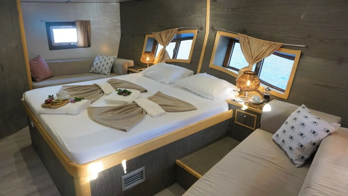 Fethiye’nin eşsiz koylarında huzurlu ve keyifli bir tatil yapmak isteyenler için Aria Gulet, konfor ve eğlenceyi bir arada sunan ideal bir teknedir. 27 metre uzunluğundaki bu özel gulet, 6 kabini ile 12 kişiye kadar misafir ağırlama kapasitesine sahiptir. Her kabinde özel duş ve WC bulunurken, gece boyunca kesintisiz klima hizmeti sunularak konforlu bir konaklama sağlanır.