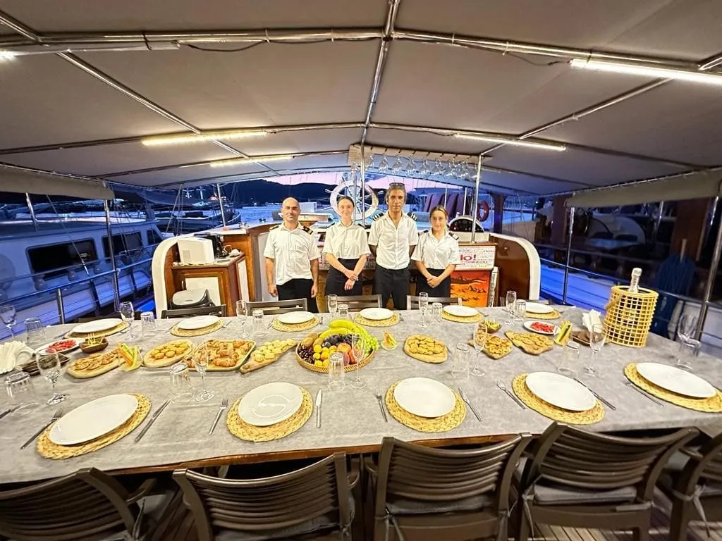 Deneyimli kaptanı ile güvenli bir seyir sunan Aria Gulet, mutfaktaki maharetleriyle de misafirlerinden tam not almaktadır. Lüks ve konforu ekonomik fiyatlarla birleştiren bu özel gulet, Fethiye’nin doğa harikası koylarında unutulmaz bir gulet kiralama deneyimi yaşamanız için sizleri bekliyor.