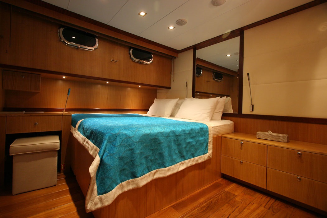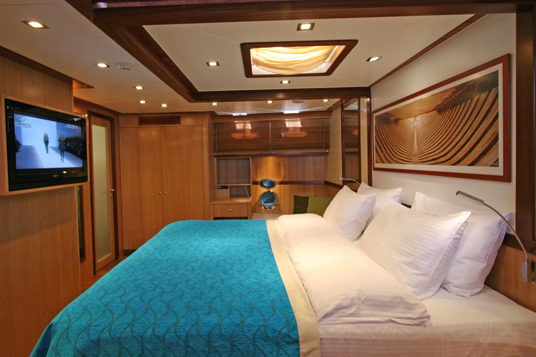 Yatın iç alanında geniş bir salon, arka yemek alanı, ön oturma grubu ve üst güvertede geniş güneşlenme alanları yer alır. DVD, PlayStation ve Bluetooth bağlantılı müzik sistemi ile tatil boyunca keyifli vakit geçirmenizi sağlar. Wi-Fi erişimi sayesinde denizde dahi bağlantıda kalabilirsiniz.