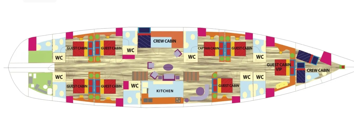| Kabin Dağılımları | 1 Master, 4 Double, 2 Twin |