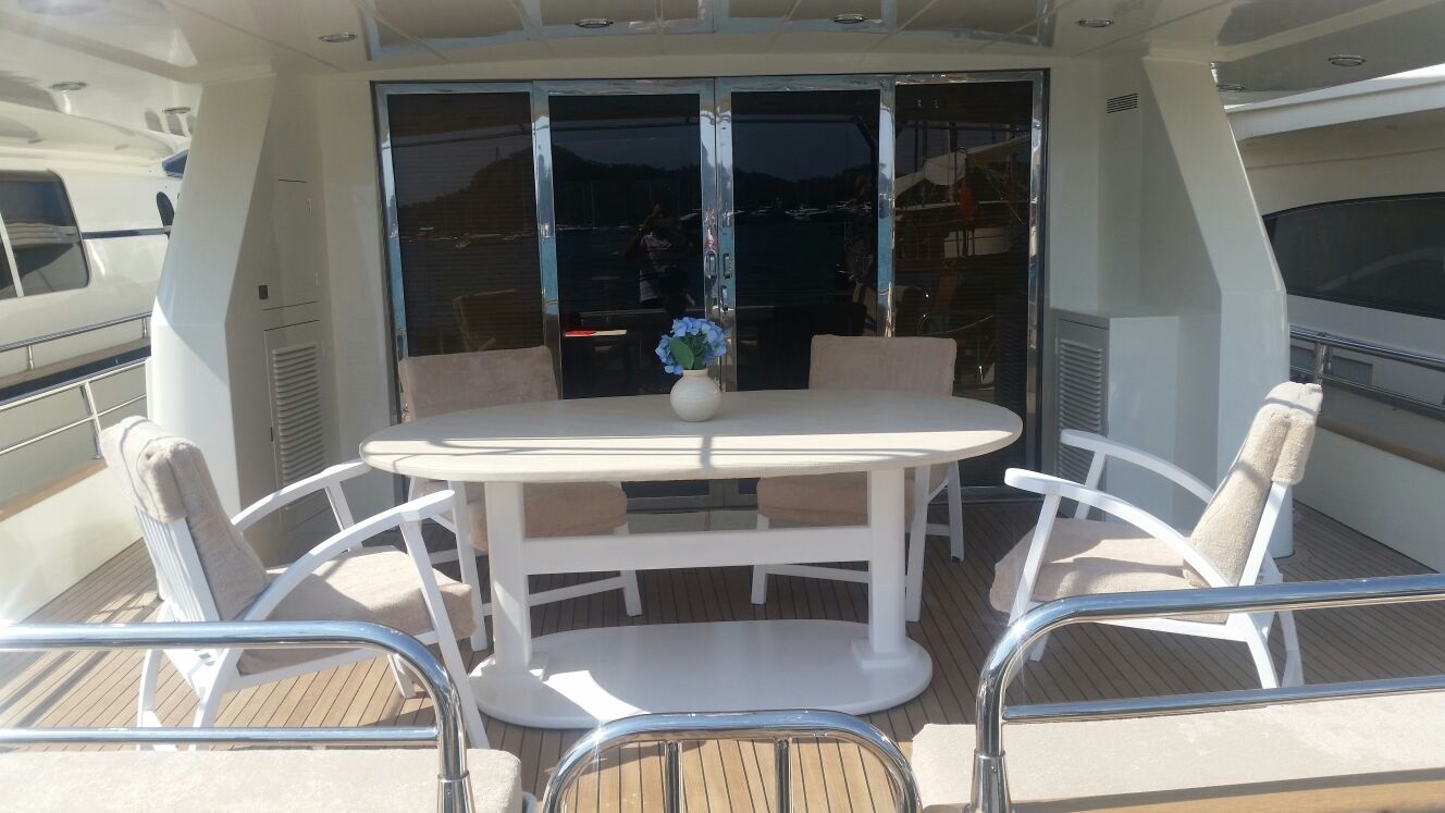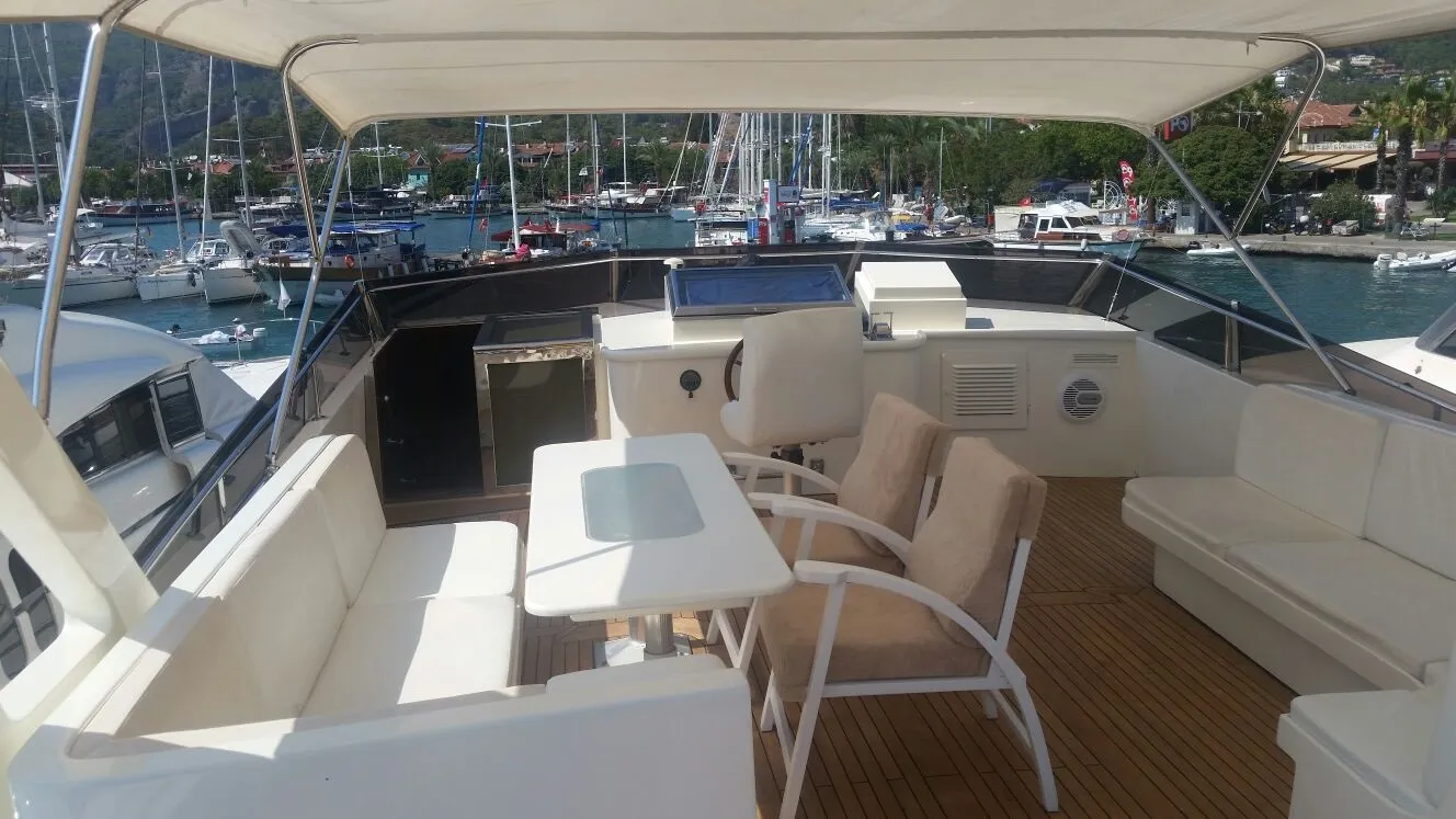 Lüks motoryat kiralama tercih eden misafirlerimize Göcek motoryat kategorisinde öncelikli sunduğumuz tekneler arasında yer alan Daddy's Toy yatımız 2020 yılında tamamen yenilenmiştir. 2 master, 2 twin olmak üzere 4 adet geniş ve konforlu kabinde 8 kişilik misafir gruplarını ağırlamaktadır. 2x 1200HP motor gücüne, 2x12 kVA jeneratör gücüne sahip motoryatımızda gece- gündüz 8-12 saat klima hizmeti verilmektedir. Her biri alanında deneyimli 1 kaptan, 1 aşçı, 2 gemiciden oluşan mürettebatıyla sizlere en iyi mavi yolculuk hizmetini sunmayı hedefleyen kiralık motoryatımızla ya da haftalık yat kiralama ile ilgili daha detaylı bilgi almak için motoryat satış temsilcimizle iletişime geçebilirsiniz.