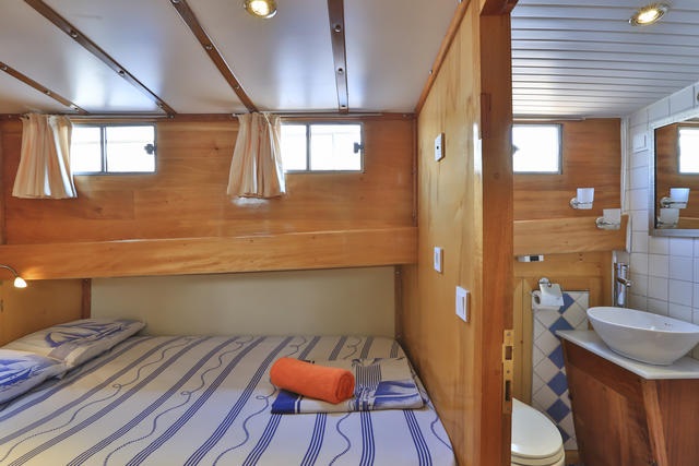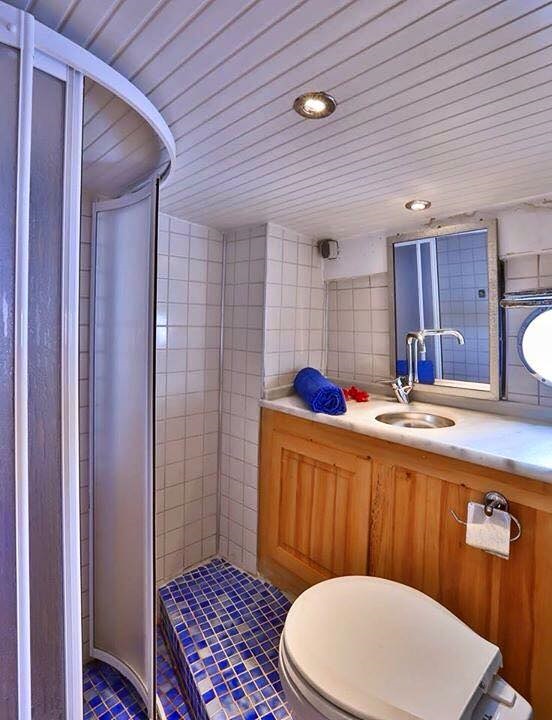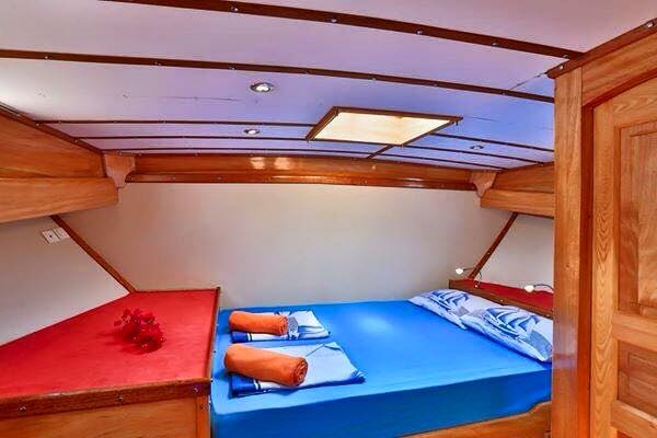 Toplamda 2 master ve 2 double kabin ile 8 kişiye kadar konaklama imkânı sunan teknemizde her kabinde duş ve tuvalet bulunmaktadır. Ayrıca sıcak yaz günlerinde gün içerisinde her kabinde 4 - 6 saat klima hizmeti verilmektedir.