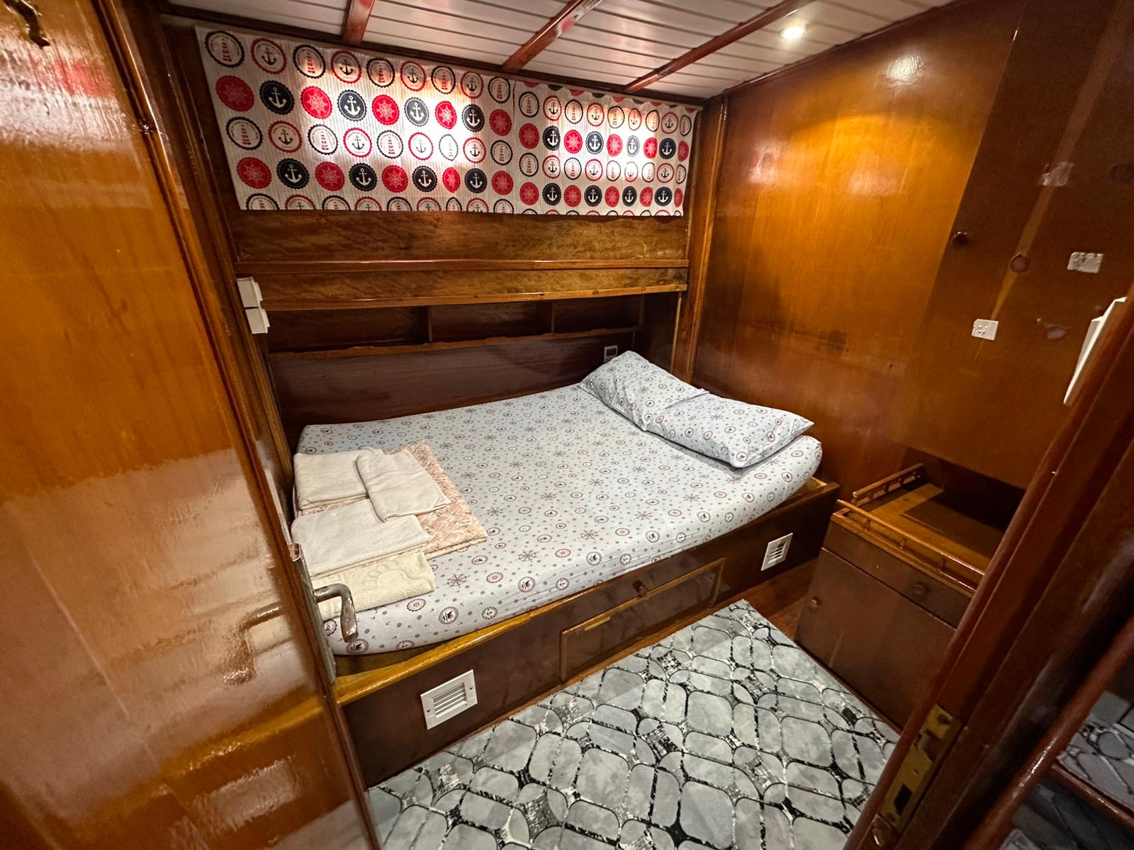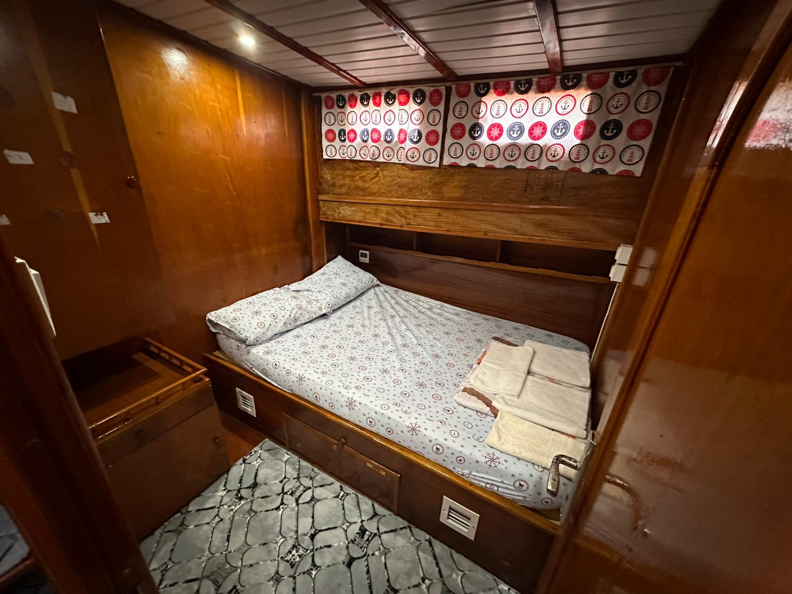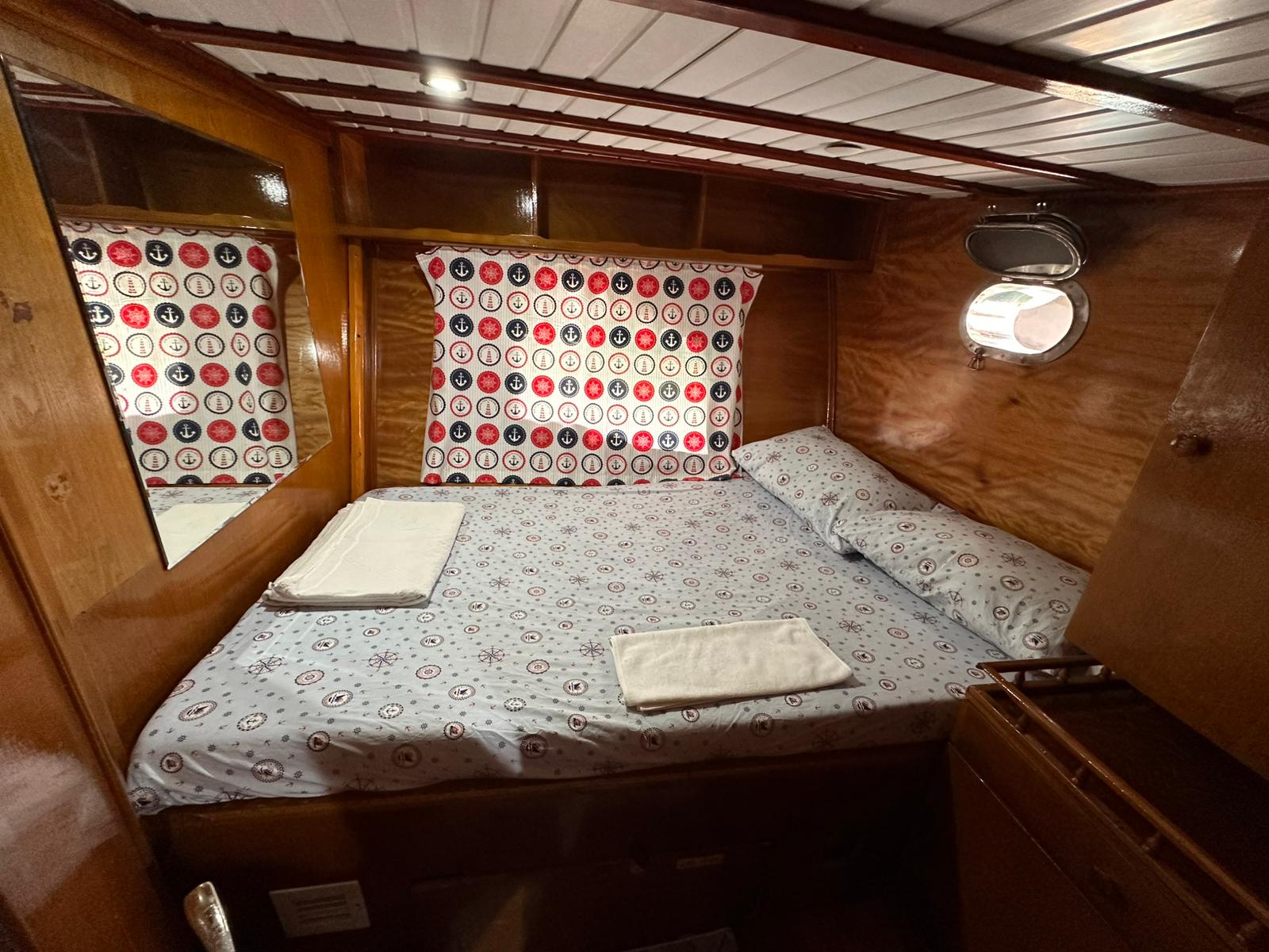 1995 yılında inşa edilen ve 2020 yılında kapsamlı bir yenilemeden geçen teknemizde kabinler, banyolar, güverte, iç ve dış mefruşatlar tamamen yenilenmiştir. Bu yenilemeler sayesinde misafirlerimize hem konforlu hem de keyifli bir mavi tur tatili sunulmaktadır. Legend Gulet’te bulunan 8 double kabinin her biri ferah bir kullanım alanına sahiptir. Kabinlerde özel banyolar bulunur ve gün içerisinde 4–6 saat klima kullanımı sağlanarak sıcak yaz günlerinde rahat bir ortam oluşturulur.