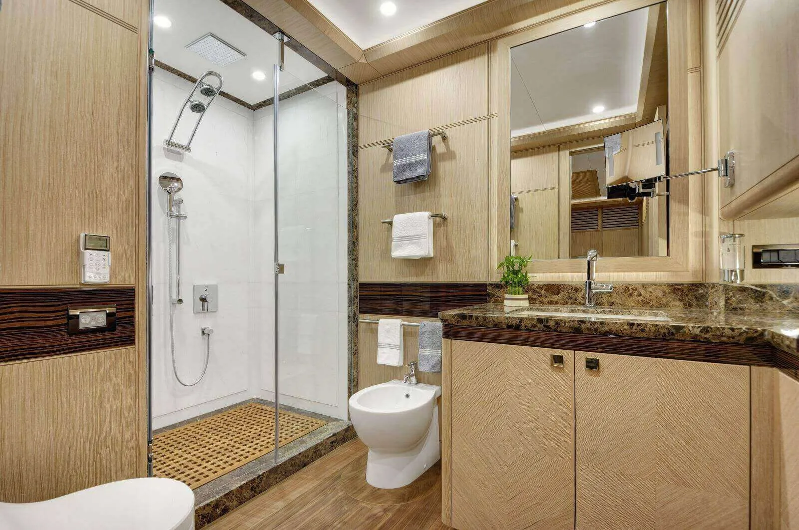 Her ayrıntısı incelikle tasarlanmış 6 kabininde 12 kişilik nezih aile ve arkadaş gruplarını ağırlamaktadır. 4 double, 2 twin kabinden oluşan kamara düzenine sahiptir. Her bir kabinde WC, duşakabinli banyo, geniş elbise dolapları, çalışma masası ve 24 saat hizmet verebilen bir klima mevcuttur. Ana salonda muhteşem bir yemek alanı, zarif oturma düzeni ve keyifli zamanlar geçirebileceğiniz bir bar mevcuttur. Arka güvertede son derece şık, büyük bir yemek masası, karşılıklı uzanıp güneşlenebileceğiniz bir dinlenme alanı mecuttur.