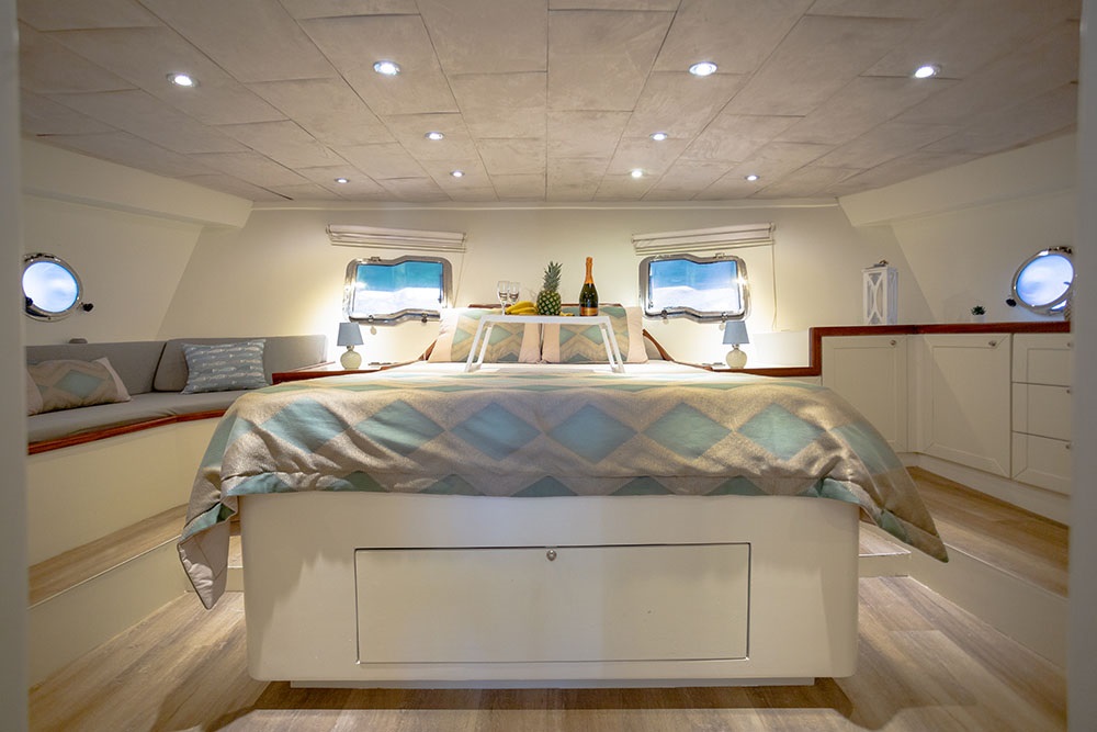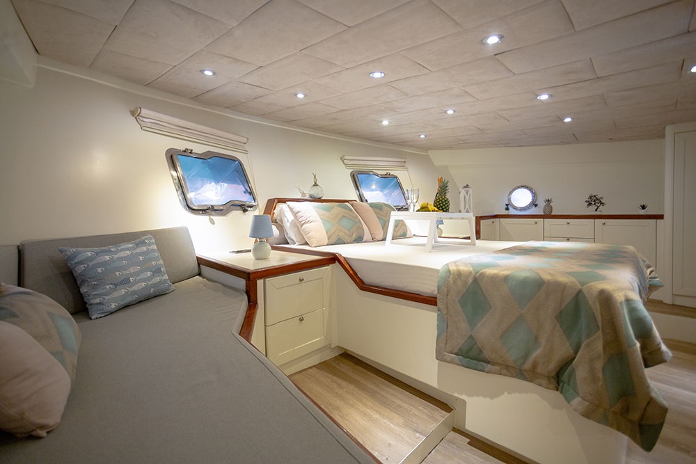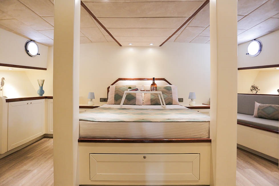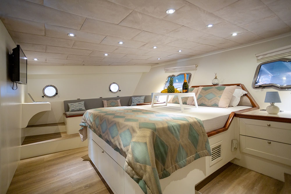 Her kabin, ferahlık ve şıklığın ön planda tutulduğu lüks otel konforunda tasarlanmıştır. Geniş açık ve kapalı oturma alanlarının yanı sıra güneşlenme bölümleri de oldukça rahattır. Misafirlerimiz, denizin huzurunu yaşarken aynı zamanda teknede sunulan tüm ayrıcalıklı detaylardan da faydalanabilir.