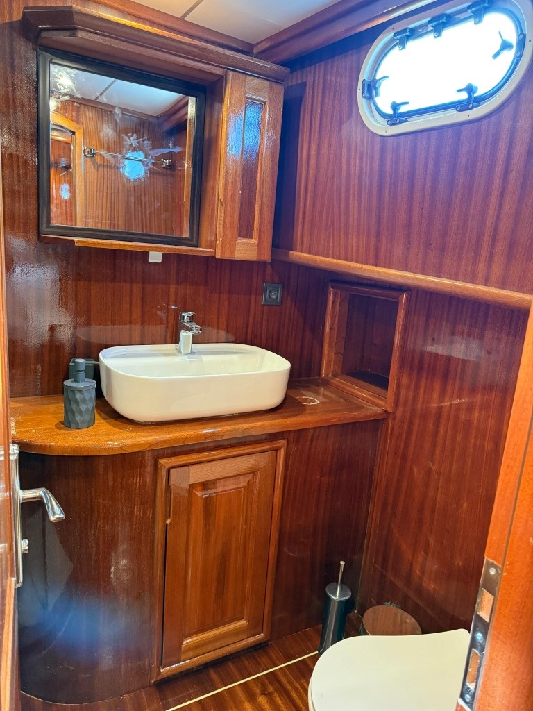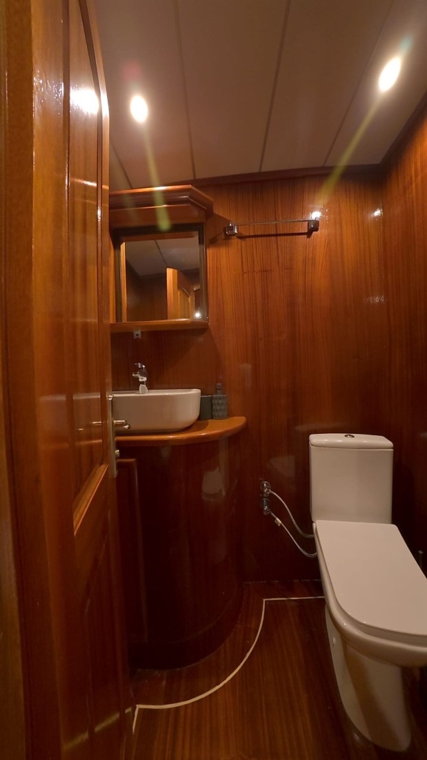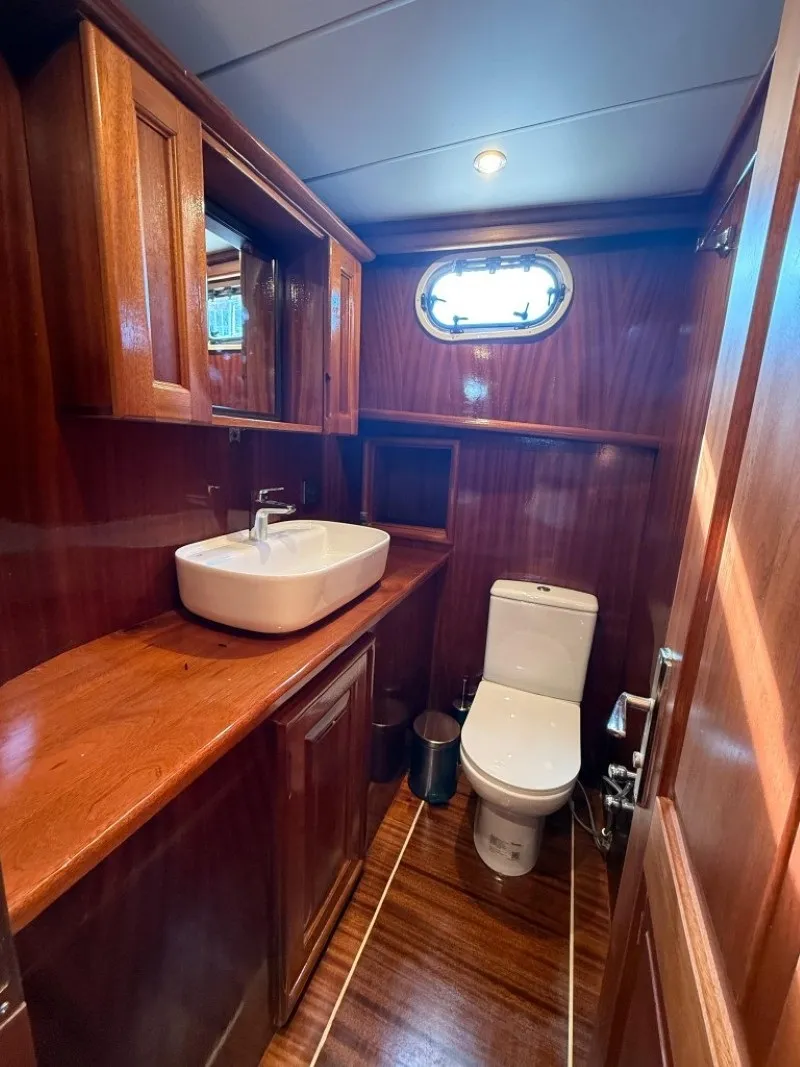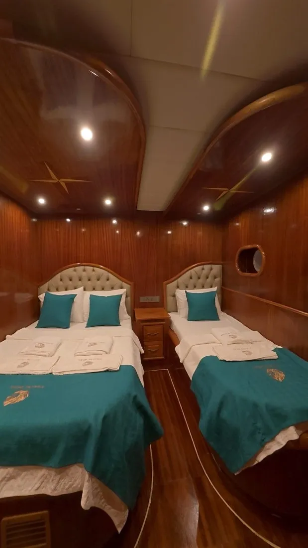 Teknemizde 2 master, 2 double ve 2 triple olmak üzere toplam 6 kabin bulunur. Her biri özel banyolu olan kabinlerimiz, 12 kişilik misafir kapasitesiyle aileler ve arkadaş grupları için ideal bir konaklama alanı sunar. Kabinlerde bulunan klima sistemleri gün içinde 4 ila 6 saat arasında konforlu bir ortam sağlar.