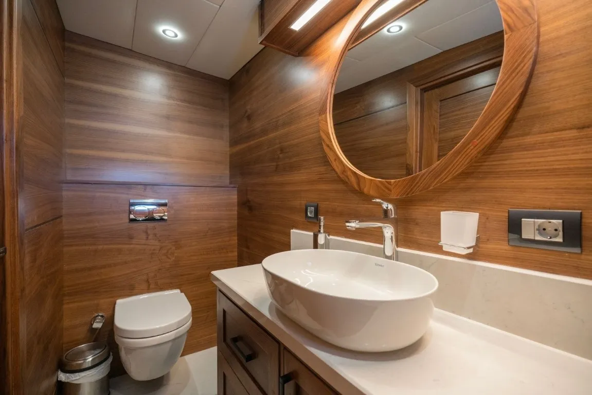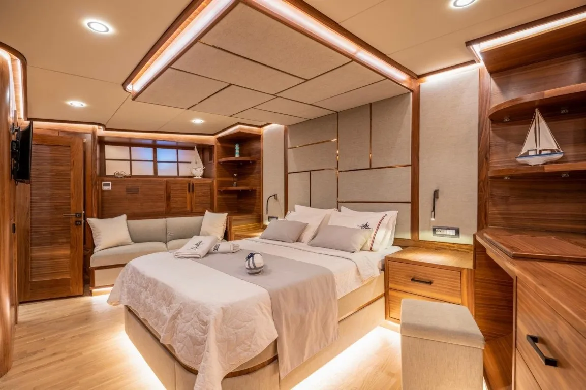 Teknemizde 2 master, 2 double, 2 triple kabin olmak üzere toplam 6 lüks kabin bulunur ve 12 kişilik gruplar için konforlu bir konaklama sunar. Geniş yaşam alanları, modern tasarımı ve donanımıyla her detayda misafirlerimizin rahatlığı düşünülmüştür.