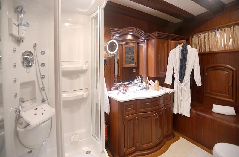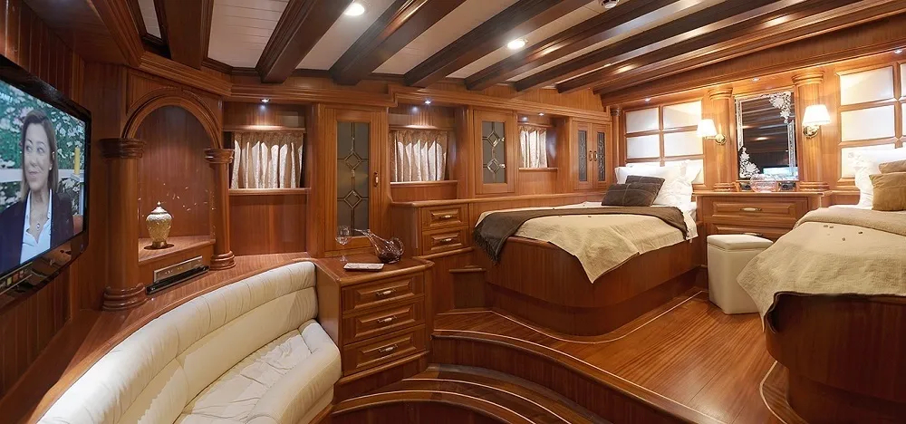 Konforlu ve şık yaşam alanları, 24 saat klima, hidro masajlı duş ve uydu televizyon sistemi gibi mavi yolculuk severlerin ihtiyaç duyabileceği her detay düşünülerek donatılmıştır. Teknemizdeki her kabin, lüks bir tatil deneyimi sunmak için özenle hazırlanmıştır. Kaptan Kadir, 6 kişilik profesyonel mürettebat tarafından en yüksek kalitede hizmetle desteklenmektedir.