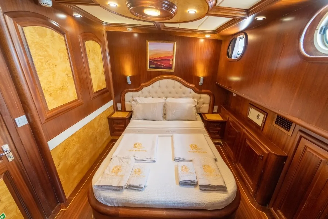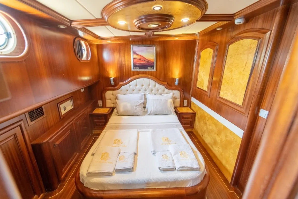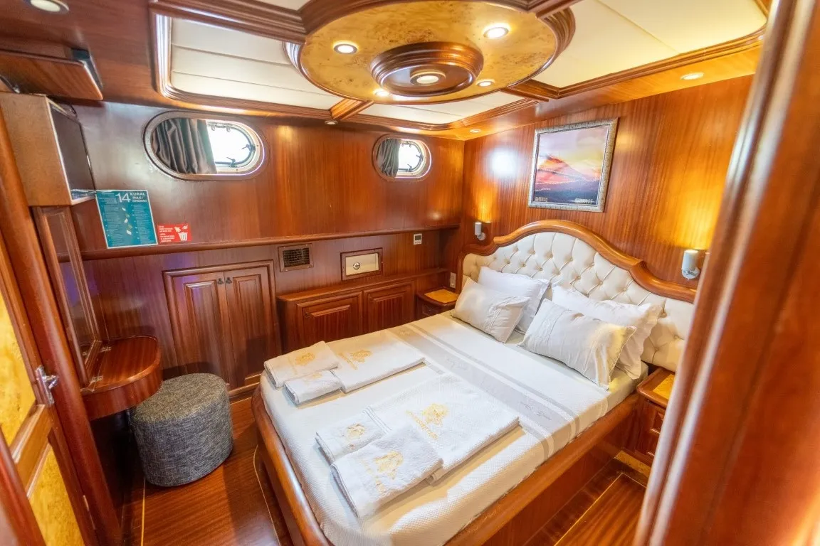 34 metre uzunluğunda, 8,2 metre genişiğindeki delüks teknemiz, geniş ve konforlu yaşam alanları, güvertesinde yer alan jakuzisi sayesinde lüks bir tatil deneyimi sunmaktadır. 2014 yılında denize indirilen klasik ahşap teknemiz, Ege ve Akdeniz'in eşsiz güzellikteki koylarında hizmet vermekte olup, her kış düzenli bakım ve yenilemelerle günümüz konfor standartlarına uygun hale getirilmektedir.