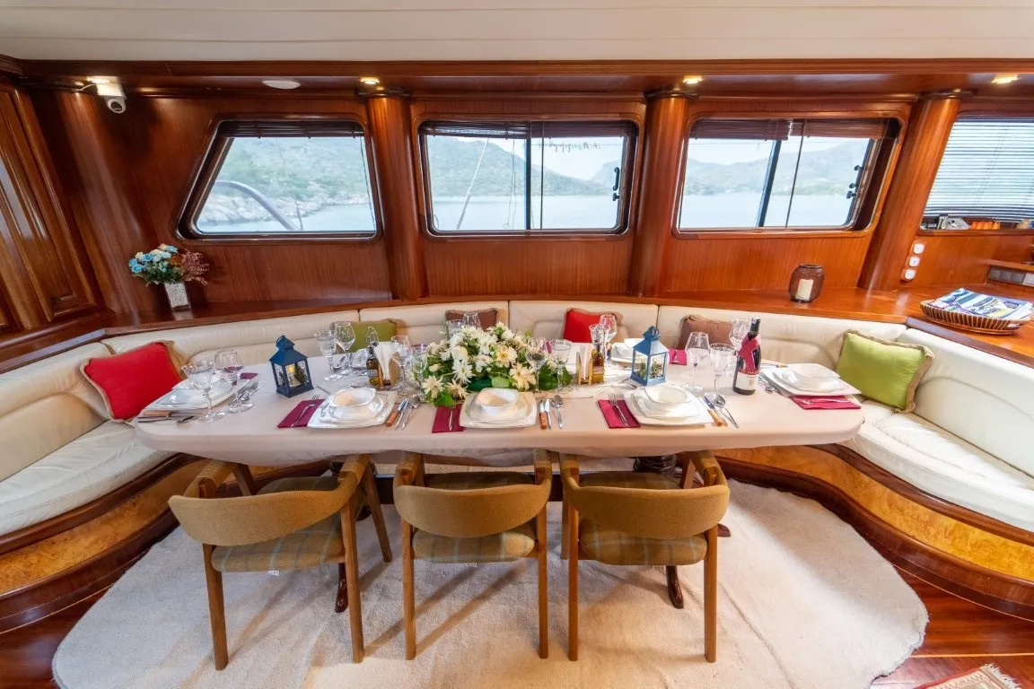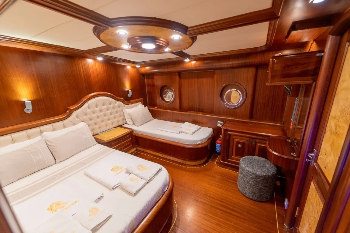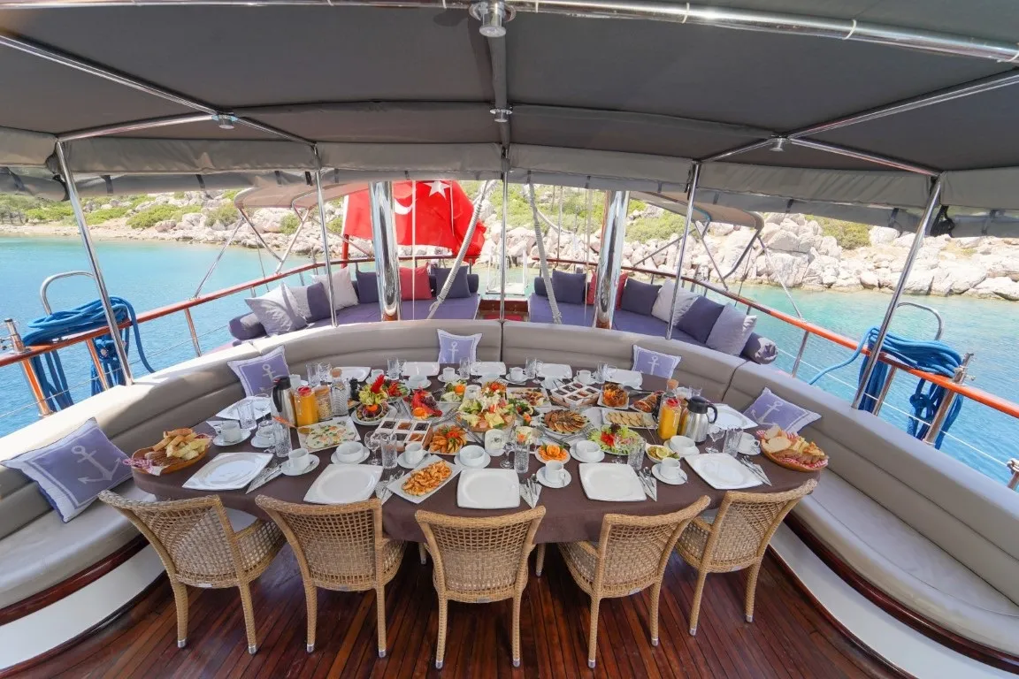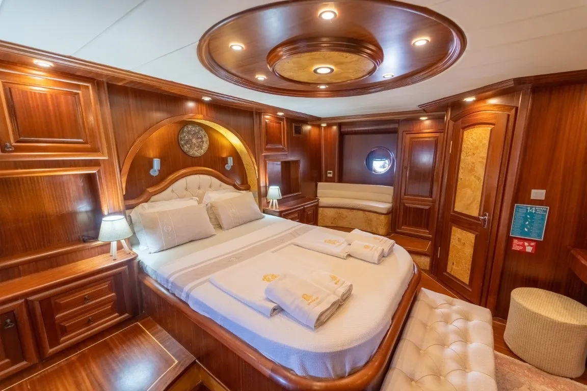 34 metre uzunluğunda, 8,2 metre genişiğindeki delüks teknemiz, geniş ve konforlu yaşam alanları, güvertesinde yer alan jakuzisi sayesinde lüks bir tatil deneyimi sunmaktadır. 2014 yılında denize indirilen klasik ahşap teknemiz, Ege ve Akdeniz'in eşsiz güzellikteki koylarında hizmet vermekte olup, her kış düzenli bakım ve yenilemelerle günümüz konfor standartlarına uygun hale getirilmektedir.