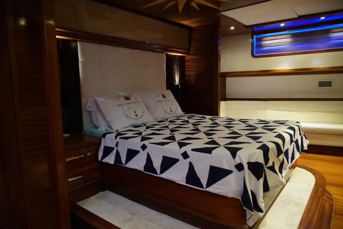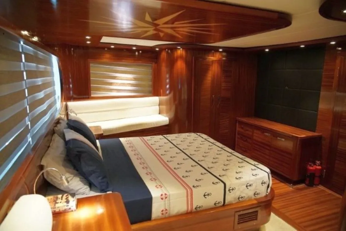 Bozburun delüks tekne ve gulet kiralama kategorisinde yer alan Gulet Şadiye Hanım, 2018 yılında Bozburun’da inşa edilmiştir ve 34 metre uzunluğu, 8 metre genişliği ile yüksek kalite ve konforu bir arada sunmaktadır. Bozburun gulet kiralama tercih eden misafirlerimize unutulmaz bir mavi yolculuk deneyimi sunmayı amaçlayan teknemiz, 2 master, 2 double, 2 twin kabin olmak üzere toplamda 6 kabinde 12 kişiye kadar konaklama imkanı sağlamaktadır. Her kabinde özel banyo, wc, klima ve Wi-Fi bağlantısı bulunarak misafirlerimizin konforu ön planda tutulmuştur. Teknenin salonunda U şeklinde bir oturma grubu, 12 kişilik yemek masası, LED TV, ses sistemi ve bar yer almaktadır. Flybridge bölümünde ise tatilinizi daha keyifli hale getiren bir jakuzi ve rahat bir oturma grubu bulunmaktadır. Geniş arka güverte, gölgelikli yemek masası ve boydan boya uzanan oturma alanı sunarken, ön güvertede ise güneşlenme minderleri ve sehpalı bir oturma alanı ile misafirlerimize rahat bir ortam sağlanmaktadır. 4 kişilik profesyonel ekibiyle hizmet veren Şadiye Hanım, size eşsiz bir mavi yolculuk deneyimi yaşatmayı vaat ediyor. Gulet kiralama talepleriniz için maviyolculuk.org müşteri temsilcimizle iletişime geçebilir, sunduğumuz fiyat avantajlarından faydalanarak unutulmaz bir tatil planlayabilirsiniz.