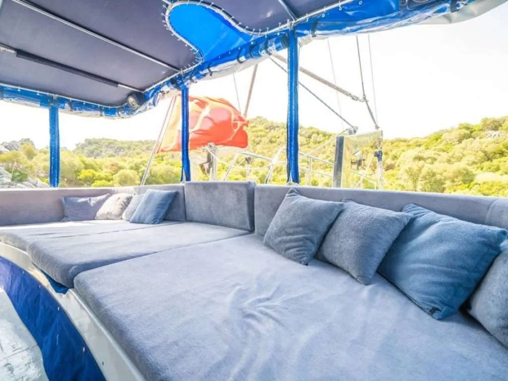 Sanda teknesi, ön ve arka güverte alanlarında oturma grupları, güneşlenme minderleri ve açılır kapanır tente ile donatılmıştır. 8 double kabin ile geniş yaşam alanları sunan bu gulet, ekonomik ve konforlu bir tatil arayanlar için ideal bir seçenektir. Sanda teknesiyle unutulmaz bir gulet tatili yapmak için maviyolculuk.org gulet kiralama danışmanıyla iletişime geçebilirsiniz.