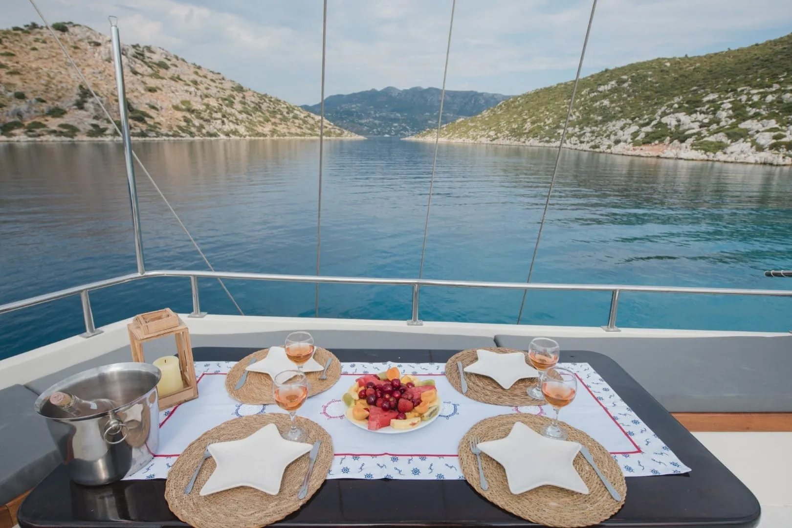 Marmaris lüks tekne kiralama hizmetimiz kapsamında modern ve konforlu kabinler, profesyonel mürettebat, geniş yaşam alanları ve özel yemek servisi ile doğayla iç içe bir tatil deneyimi sunuyoruz. Eğer siz de Marmaris’ten hareket eden lüks bir gulet ile unutulmaz bir tatil yapmak istiyorsanız, Seğmen Gulet ile mavi yolculuk fırsatını kaçırmayın. Daha fazla bilgi almak ve Marmaris lüks gulet kiralama için bizimle iletişime geçin.