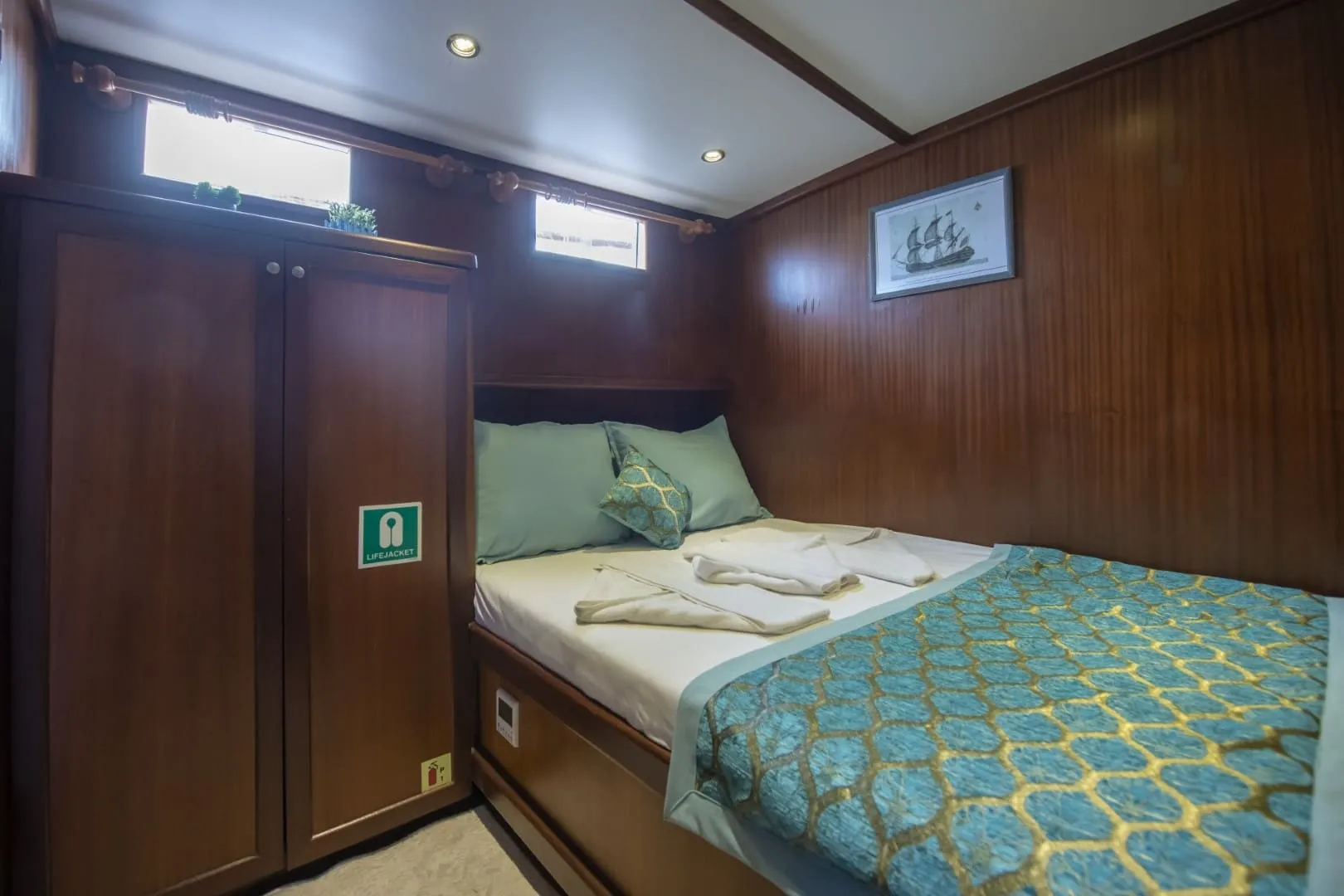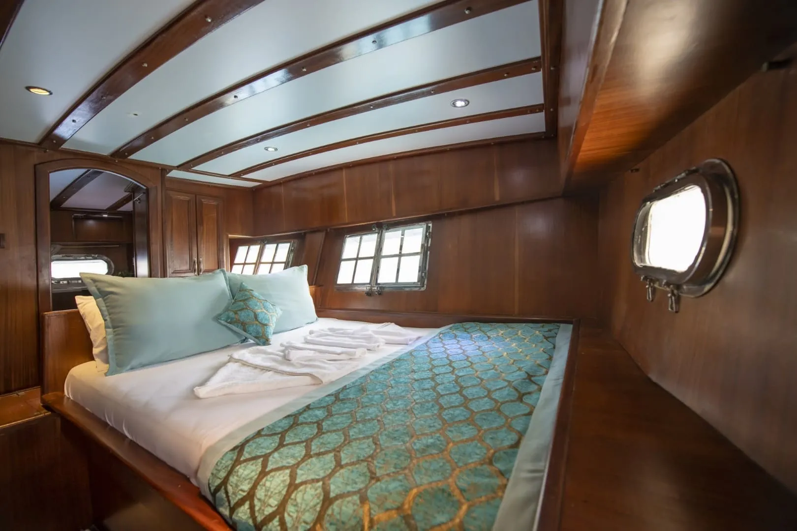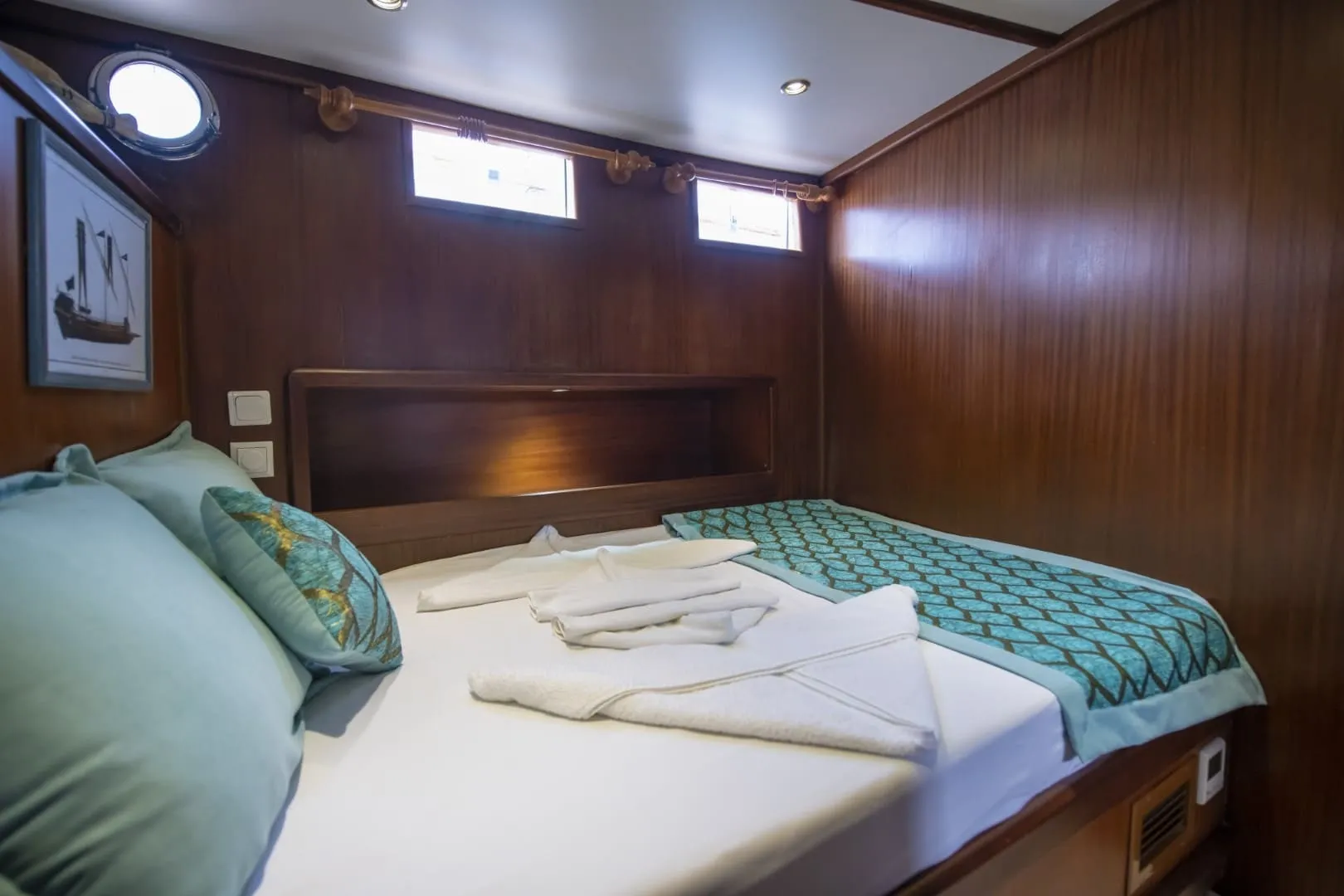 Marmaris mavi yolculuk rotalarında, sakin koylarda demirleyerek doğayla iç içe bir tatil deneyimi yaşayabilirsiniz. Geniş güvertesi, güneşlenme alanları ve şık iç tasarımı ile Seğmen Gulet, size kusursuz bir konaklama sunuyor. Lüks ve klasik mobilyalarla döşenmiş geniş kabinleri, rahat yaşam alanları ve üst düzey hizmetiyle hem aileler hem de kalabalık arkadaş grupları için ideal bir seçenektir.