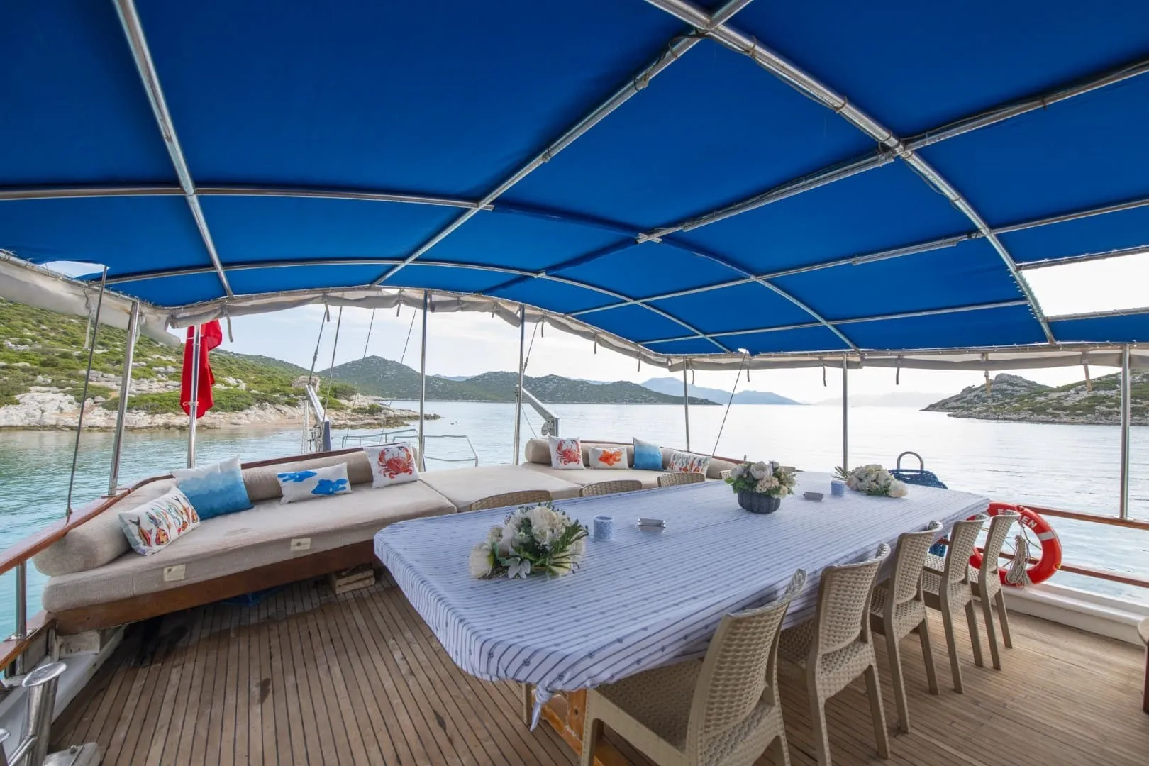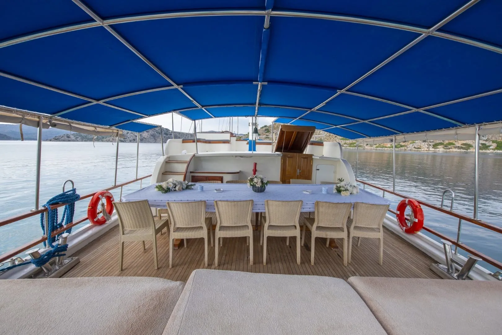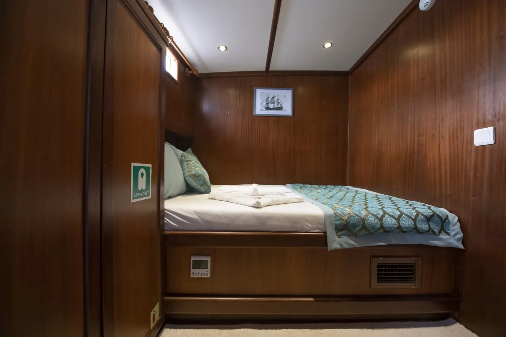 Marmaris mavi yolculuk rotalarında, sakin koylarda demirleyerek doğayla iç içe bir tatil deneyimi yaşayabilirsiniz. Geniş güvertesi, güneşlenme alanları ve şık iç tasarımı ile Seğmen Gulet, size kusursuz bir konaklama sunuyor. Lüks ve klasik mobilyalarla döşenmiş geniş kabinleri, rahat yaşam alanları ve üst düzey hizmetiyle hem aileler hem de kalabalık arkadaş grupları için ideal bir seçenektir.