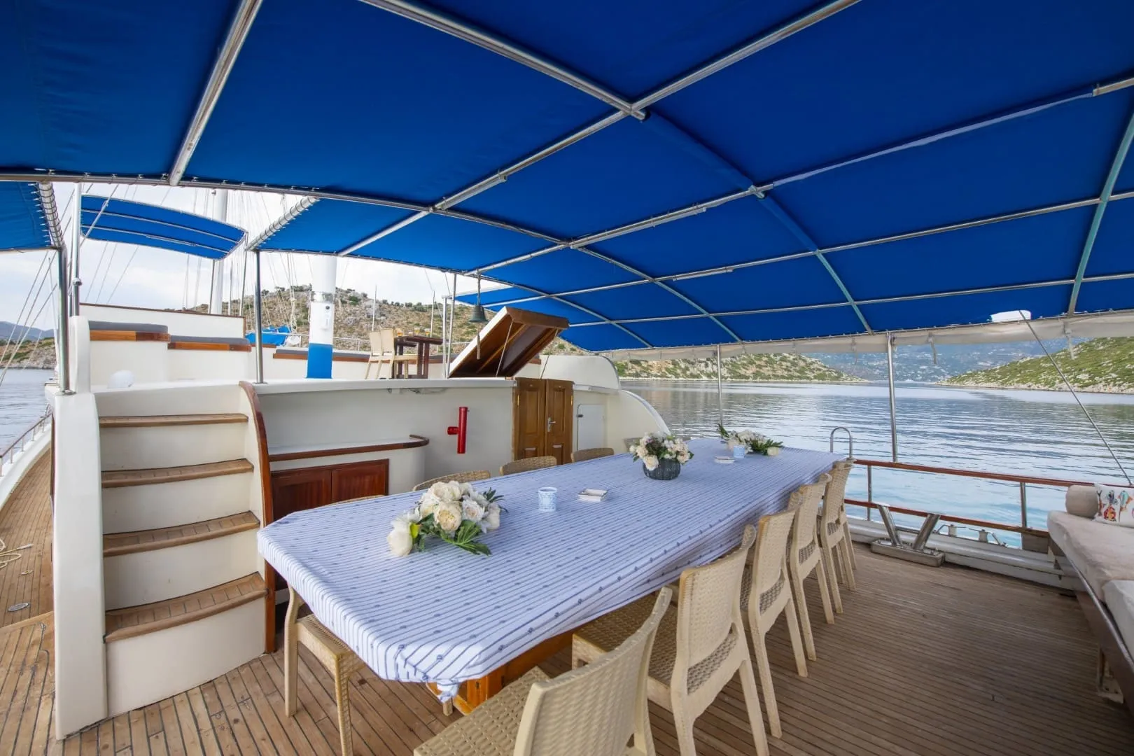 Marmaris Limanı çıkışlı lüks gulet kiralama hizmetimiz, konfor ve kaliteyi bir araya getirerek unutulmaz bir mavi yolculuk deneyimi sunuyor. 2019 yılında tamamen yenilenen Seğmen Gulet, modern donanımı ve şık tasarımıyla misafirlerini ağırlamaya hazırdır. Teknemiz 24 metre uzunluğunda ve 6.7 metre genişliğindedir. İçerisinde 2 master ve 5 double olmak üzere toplam 7 kabin bulunmaktadır. Toplam 14 kişilik kapasiteye sahip olup, küçük çocuk veya bebek sayısının fazla olduğu durumlarda 16 yolcu kabul edilebilmektedir. Profesyonel 3 yat personeli, tatiliniz boyunca güvenliğiniz ve konforunuz için hizmetinizde olacaktır.