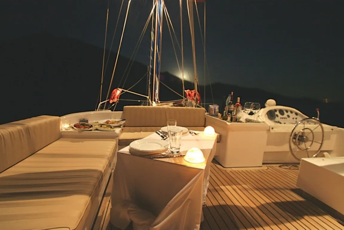 Serenity 70, modern gulet yapısıyla dikkat çeker. Ön güvertede güneşlenme alanı, arka ve üst güvertelerde rahat oturma bölümleri, iç salonda ise yemek masası, DVD ve müzik arşivi, kutu oyunları gibi eğlenceli vakit geçirmenize olanak tanıyan alanlar yer almaktadır.