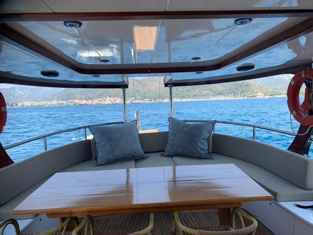 Kaptanlı tekne kiralama tercih eden misafirler için teknemizde 1 kaptan ve 1 aşçıdan oluşan profesyonel bir ekip hizmet vermektedir. Deneyimli mürettebatımız, Marmaris ve çevresindeki eşsiz koylarda güvenli ve keyifli bir seyir sunarken, tatiliniz boyunca tüm detaylarla ilgilenir.