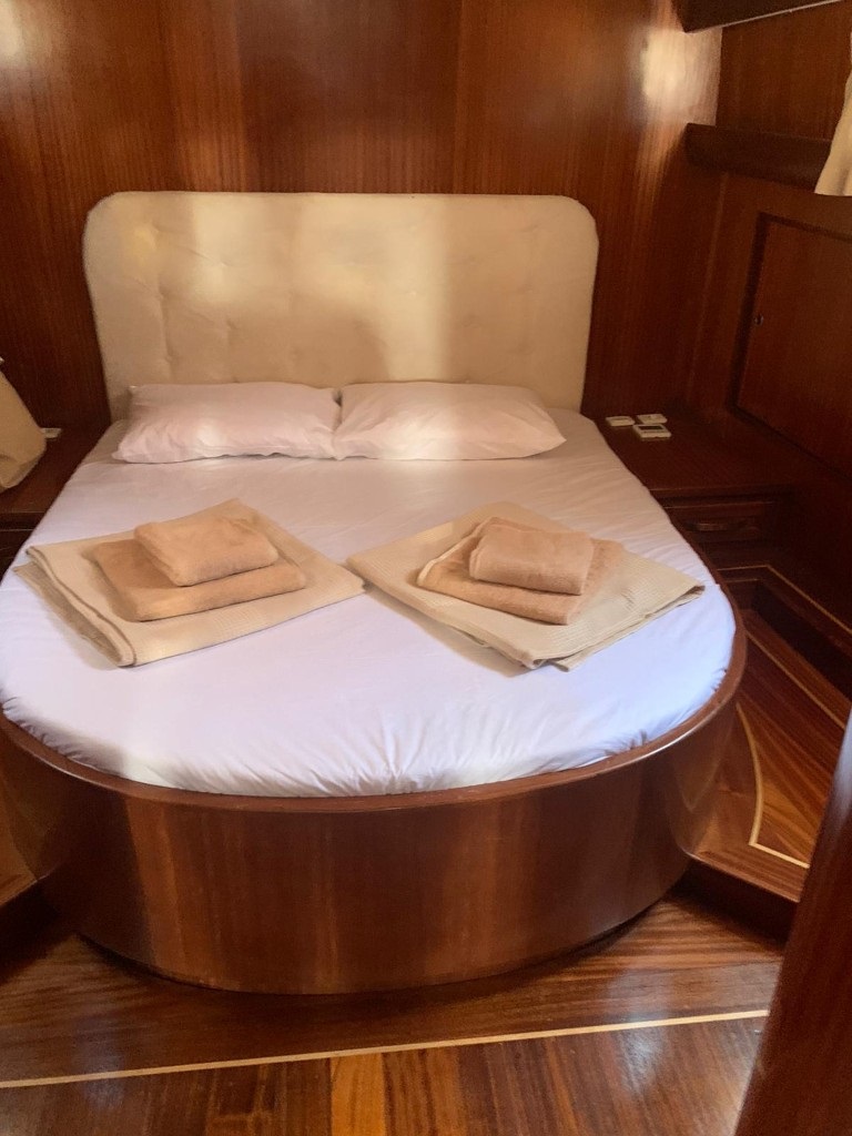 Gulet yapısına sahip teknemiz, 1 master ve 2 double olmak üzere toplam 3 kabinlidir ve 6 kişilik misafir kapasitesine sahiptir. Her kabinde klima ve özel banyo mevcuttur.