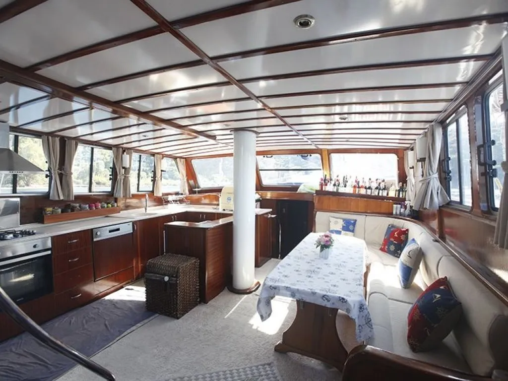 Sumru Sultan Gulet ile Marmaris çıkışlı gulet kiralama hizmetimizle turkuaz suların keyfini çıkarabilir, ekonomik mavi yolculuk fırsatlarıyla unutulmaz bir tatil yaşayabilirsiniz. Teknemiz, geniş oturma alanları, yemek masası ve güneşlenme minderleri ile konforlu bir yaşam alanı sunmaktadır.