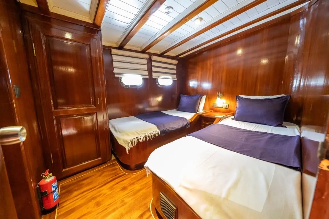 Yüce Bey, siz değerli misafirlerimizin ihtiyaçları düşünülerek tasarlanmış 5 kabinle hizmet sunar. 1 master, 2 double, 2 twin kabinden oluşan Yüce Bey, 10 kişilik misafir grupları için idealdir. Her kabinde rahat ve şık bir konaklama deneyimi için gereken tüm detaylar düşünülmüştür.