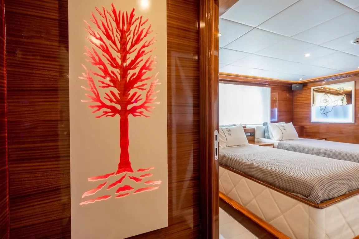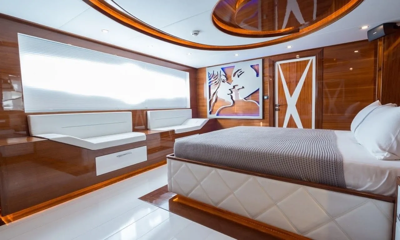 2021 yılında inşa edilen, ultra lüks motorsailer, 39 metre uzunluğunda, 8.5 metre genişliğinde olup ultra lüks tekne kiralamayı tercih eden mavi yolculuk tutkunlarına hizmet vermektedir. Çarpıcı, sıcak tonlarla tamamlanan iç mekanı, seçkin işçiliği ile büyüleyici bir mimariye sahip olan yelkenli yatımız, 1 master, 3 double, 1 twinden oluşan 5 kabini ile 10 kişilik nezih aile ve arkadaş gruplarına hizmet vermektedir. Her kamarada TV, klima, müzik sistemi ve saç kurutma makinesi bulunmaktadır. Teknemizin şık tasarlanmış salonunda bulunan muhteşem ses sistemi gerek film izlerken gerekse müzik dinlerken sizleri etkileyecek kalitede donatılmıştır.
