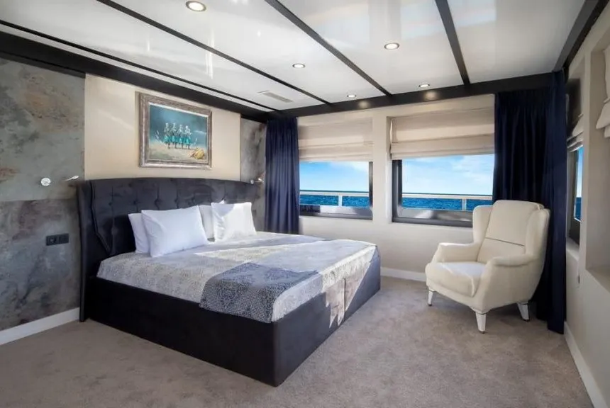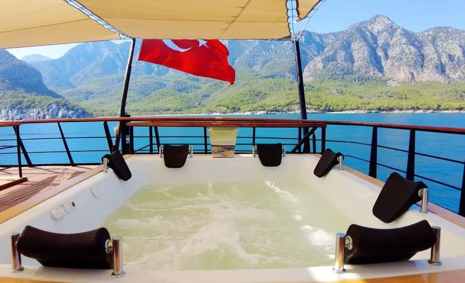 Lüks motoryatımız, Türk Hamamı, masaj odası, sauna, jakuzi, Wİ-Fİ ve müzik çalar gibi eşsiz olanaklara sahiptir.
