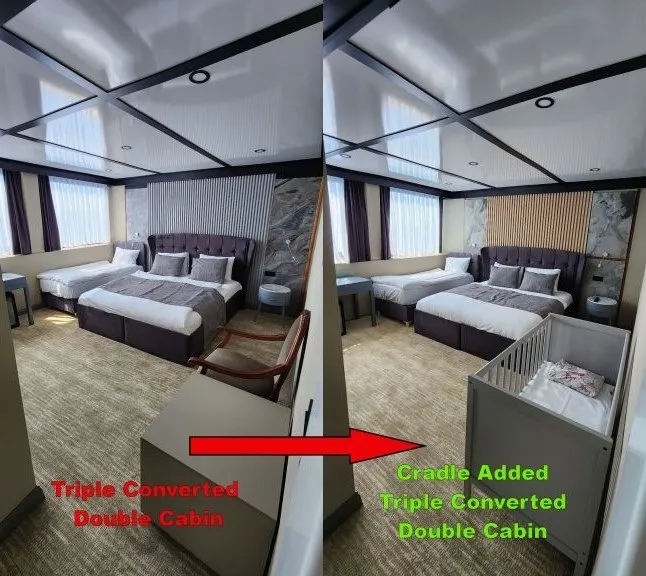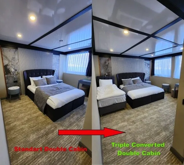 | Kabin Dağılımları | 1 Vip, 2 Master, 10 Double |