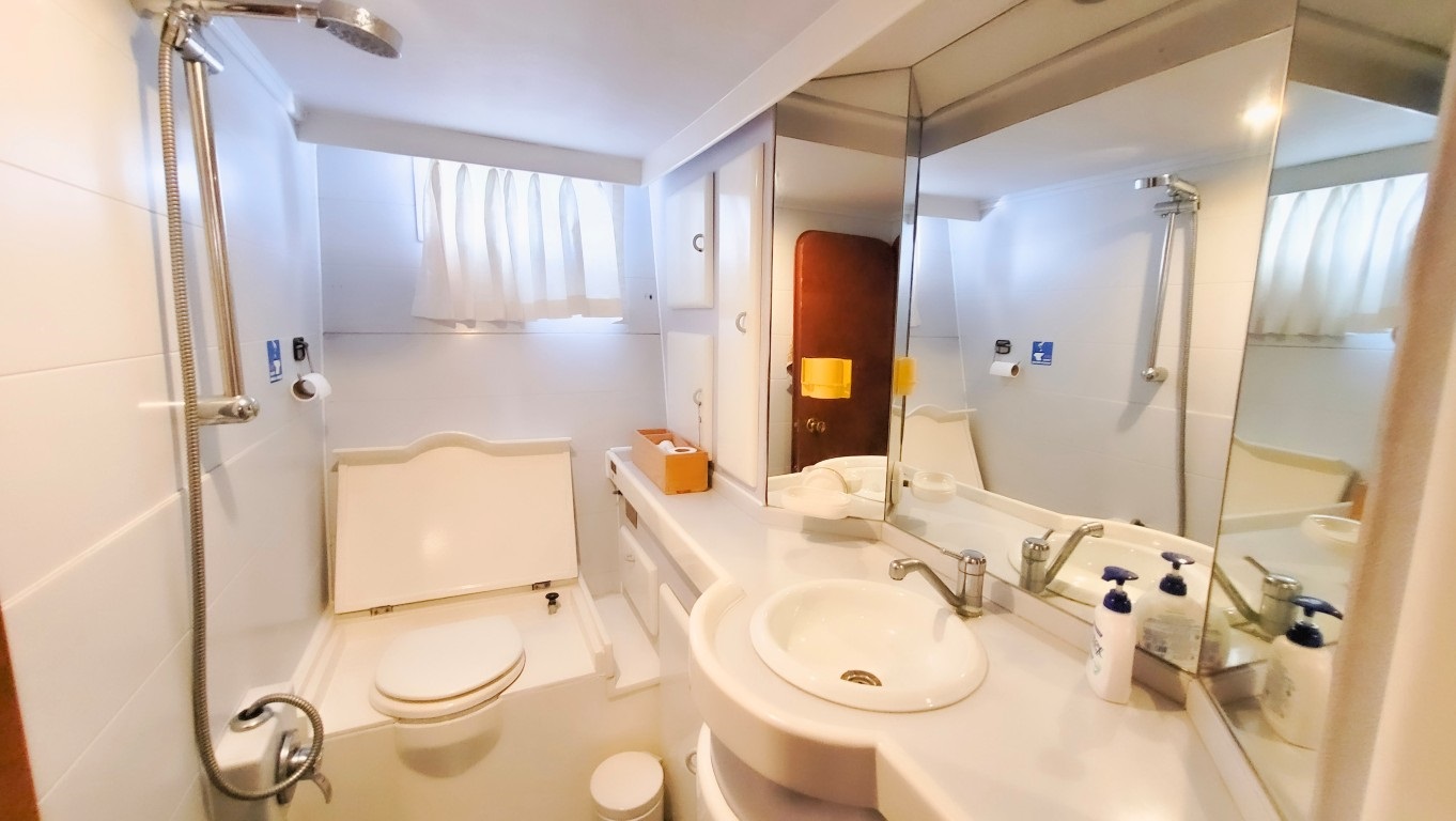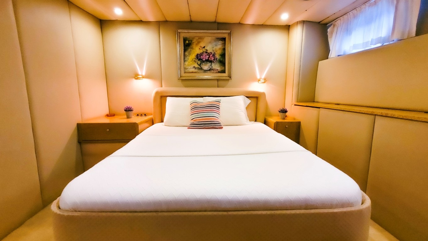 Motoryatımızda 2 adet 665 HP motor ve 32 KWA jeneratör yer almakta olup, misafirlerimize gün içinde 4 ila 6 saat arasında klima hizmeti sağlanmaktadır. Teknemizin ön kısmında güneşlenme minderleri, arka kısmında yemek masası ve oturma grubu, üst güverte olarak bilinen flybridge alanında ise rahat bir oturma grubu, dümen ve açılır kapanır tente mevcuttur. Bu sayede misafirlerimiz her bölümde konforlu bir seyir deneyimi yaşayabilmektedir.