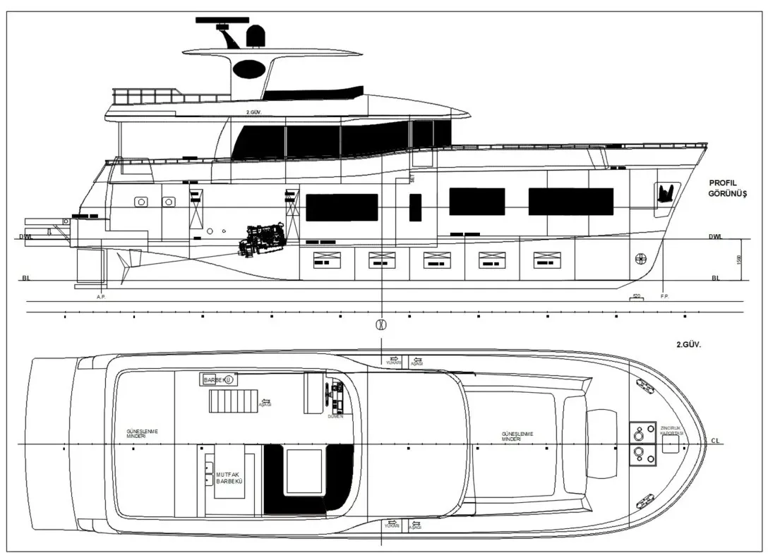 - Elektronik Sistemler: Radar, Telsiz, Gps, Pusula, Uydu Haberleşme Sistemi, Elektronik Harita, Derinlik Ölçer, Otomatik Pilot