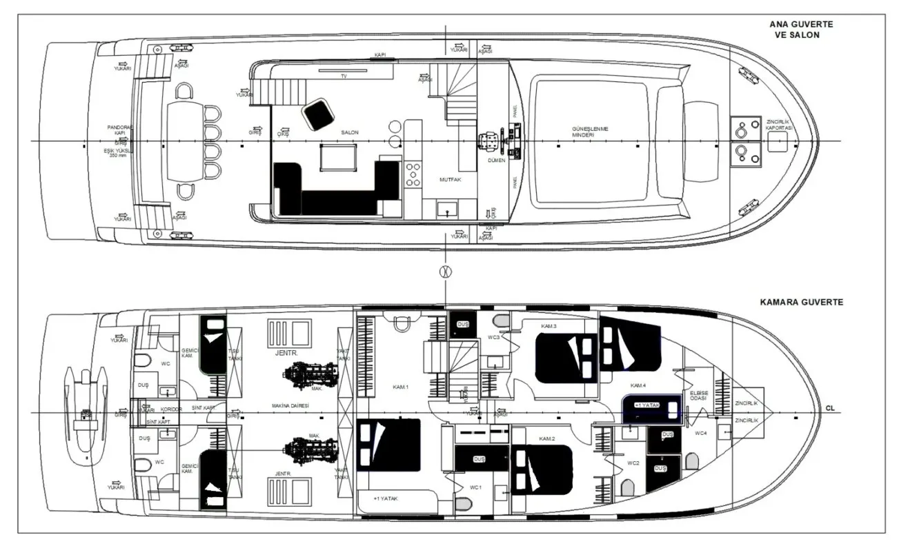 | Kabin Dağılımları | 1 Master, 2 Double, 1 Triple |
