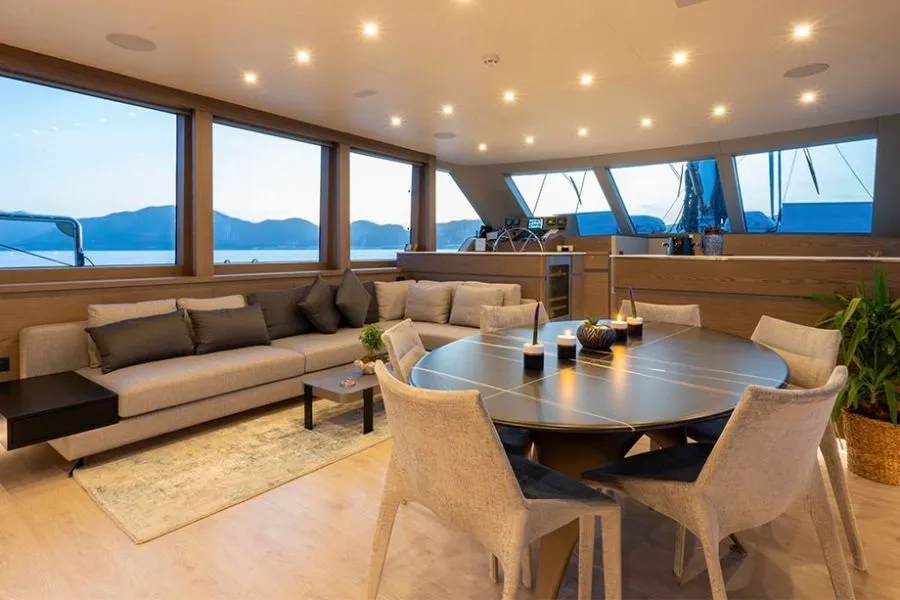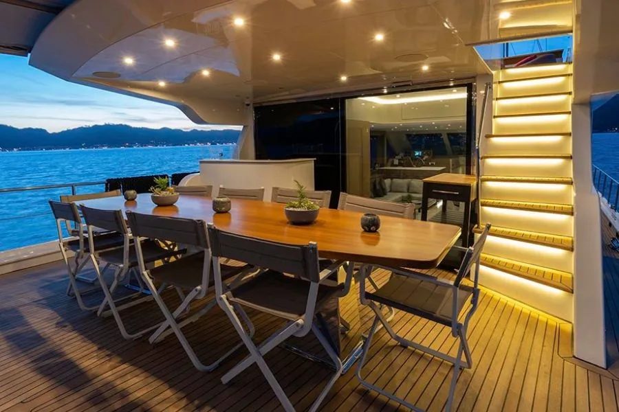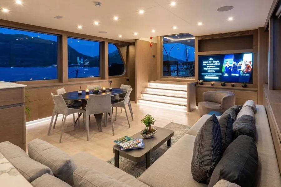 Toplamda 5 geniş ve konforlu kabini bulunan Good Life, 10 kişiye kadar misafir ağırlayabilir. Her kabin özenle tasarlanmış olup misafirlere üst düzey bir rahatlık ve mahremiyet sunar. Teknenin ön güvertesinde yer alan deniz manzaralı jakuzi, gün batımında eşsiz anlar yaşamak ve yıldızların altında rahatlamak isteyenler için ideal bir alandır. Geniş güverte alanı, güneşlenme minderleri ve açık hava duşları ile gün boyunca konforlu bir dinlenme alanı sunarken, zarif iç tasarımı kaliteyi her ayrıntısıyla hissettirir. Wi-Fi, TV, eğlence sistemleri ve kart oyunları gibi detaylar, her yaştan misafirin keyifli vakit geçirmesini sağlar. Good Life’ın teknik donanımı da etkileyicidir; 2 x 610 HP motoru, 2 x 27 kW jeneratörü, maksimum 15 knot hızı ve 8 metrelik genişliğiyle güvenli ve konforlu bir seyir imkânı sunar. Ayrıca teknede 2 adet jet ski, seabob, wakeboard, knee board, water ski, paddle board, banana, ringo, balık tutma takımları, maske ve şnorkel, paletler gibi çok sayıda su sporu ve eğlence ekipmanı da yer alır.