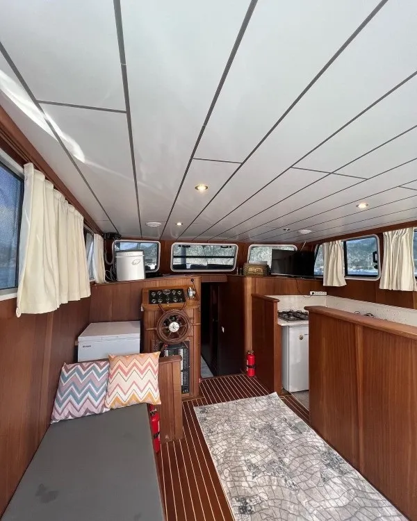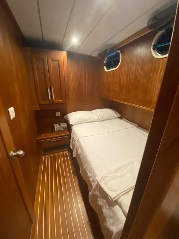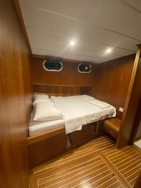 15 metre uzunluğa ve 5 metre genişliğe sahip 3 kabinli tekne, 1 master ve 2 double kabiniyle 6 kişilik aile veya arkadaş gruplarını rahatlıkla ağırlayabilmektedir. Her kabinde duşakabinli özel banyo ve wc yer almakta, misafirlerin konforu en ön planda tutulmaktadır.