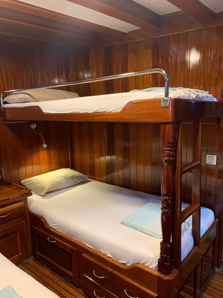 Swordfish 3 Gulet, 1995 yılında inşa edilmiş olup 2020 yılında kapsamlı bir yenileme geçirmiştir. Selimiye çıkışlı olarak Hisarönü Körfezi’nde mavi yolculuk hizmeti sunan yat, 32 metre uzunluğu ve geniş tasarımıyla güvenli ve konforlu bir seyir sağlar. Toplam 10 kabinde 20 kişilik konaklama kapasitesine sahip olan Swordfish 3, 8 triple ve 2 double kabin düzeniyle kalabalık gruplar için ideal bir yapıdadır. Modernize edilen iç tasarımı ve ferah kabinleri, misafirlerin rahat bir tatil geçirmesine olanak tanır.