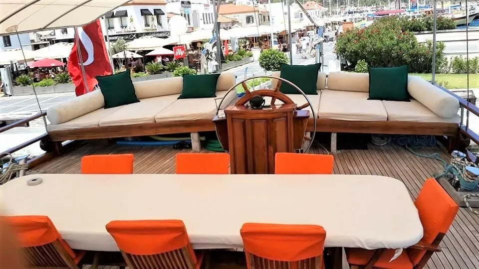 Marmaris lüks gulet kiralama seçenekleri arasında yer alan Efsane Karayiğit Teknesi, konfor ve keyfi bir araya getiren özel tasarımıyla mavi yolculuk severlerin gözdesi olmuştur. Turgut ( Turgut Köy ) mavi tur talepleriniz de karşılayan 30 metre uzunluğunda ve 7.7 metre genişliğinde olan teknemiz, konforlu yaşam alanları ve yüksek performanslı donanımıyla unutulmaz bir tatil deneyimi sunmaktadır.