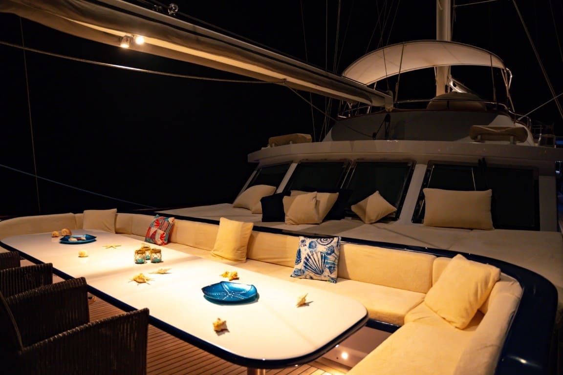 Oldukça geniş iç ve dış yaşam alanları bulunan Double Eagle’da, 7 kişilik mürettebatımız misafir memnuniyeti odaklı ve özveriyle hizmet vermektedir. 2019 TYBA Yacht Charter Show’da en iyi sunum ve 2024 yılında en misafirperver mürettebat ödülüne layık görülmüştür.