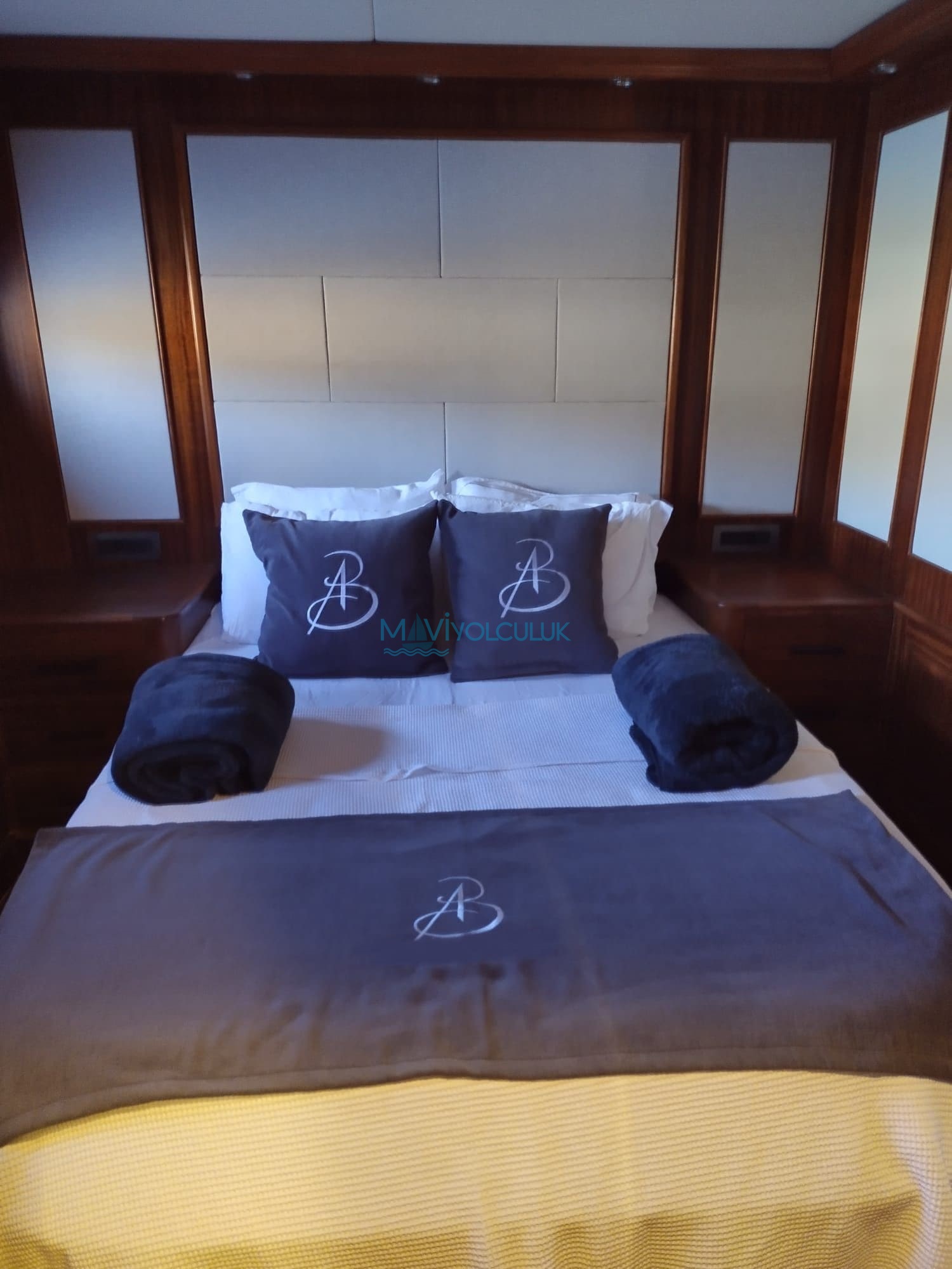 Bozburun’un sakin ve doğal atmosferinde lüks bir mavi yolculuk deneyimi yaşamak isteyenler için tasarlanan Aqua Bella, 2023 yılında tamamen yenilenmiş olup lüks konforu ve geleneksel gulet şıklığını bir araya getiriyor. 24 metre uzunluğunda ve 7.2 metre genişliğinde olan teknemiz, 2 master, 2 double ve 1 twin olmak üzere toplam 5 kabininde 10 kişiye kadar misafiri ağırlayabilecek kapasitededir. Her kabinde özel banyo ve klima sistemi mevcut olup, gün boyu 8-12 saat aralığında kesintisiz klima kullanımı sağlanmaktadır. Deneyimli 4 kişilik mürettebat (1 kaptan, 1 aşçı, 1 gemici ve 1 servis personeli), konforunuz ve güvenliğiniz için tüm detaylarla ilgilenirken siz sadece tatilin keyfini çıkarırsınız. Gulet kiralama seçenekleri arasında estetik ve konforuyla öne çıkan Aqua Bella, mavi yolculuğunuzu unutulmaz kılacak donanımlara sahiptir. Türk karasularında sınırsız internet bağlantısı sayesinde, denizin ortasında bile kesintisiz iletişim sağlayabilirsiniz. Bozburun tekne kiralama taleplerinizde, zarif tasarımı ve modern olanaklarıyla Aqua Bella, Ege’nin bakir koylarında özgürce dolaşmak isteyenler için hazır bir seçenektir. Teknede sunulan su sporları arasında paddle board, ringo, amatör maske, şnorkel, palet ve amatör balık tutma ekipmanları yer almaktadır. Bozburun lüks tekne kiralama arayışınızda Aqua Bella, geniş yaşam alanları, yüksek hizmet kalitesi ve şıklığıyla beklentilerinizi fazlasıyla karşılayacaktır. Hayalinizdeki mavi yolculuk için maviyolculuk.org tekne kiralama departmanımız ile hemen iletişime geçebilirsiniz.