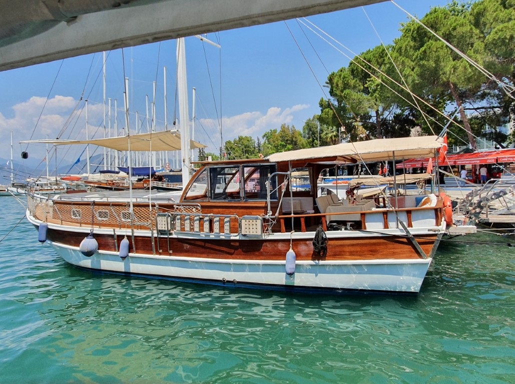 Holiday M guleti, konforu ve ekonomik fiyat avantajını bir araya getiren özel tasarımıyla Fethiye limanı çıkışlı günübirlik tekne kiralama seçenekleri arasında öne çıkmaktadır. 15 metre uzunluğa ve 4,5 metre genişliğe sahip olan bu gulet, 2014 yapımı olup, her sene düzenli bakımları yapılmakta olan bir teknedir. Ege ve Akdeniz’in büyüleyici koylarında keyifli bir mavi tur deneyimi yaşamak isteyen misafirler için ideal bir tercihtir.