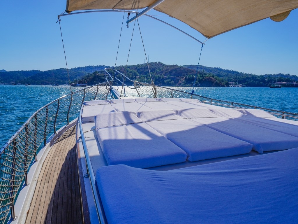 Holiday M guleti, 8 knot seyir hızı ve 9 knot maksimum hızıyla Fethiye koyları, Göcek 12 Adalar rotası ve çevresindeki eşsiz deniz güzelliklerinde güvenli bir seyir imkânı sunar. Bu rota, turkuaz suları, yemyeşil doğası ve sakin koylarıyla Türkiye’nin en popüler mavi tur bölgelerinden biridir. Holiday M ile Fethiye ve Göcek’in cennet koylarını keşfederken, yüzme molaları, güneşlenme ve keyifli anılarla dolu bir gün sizleri bekler.