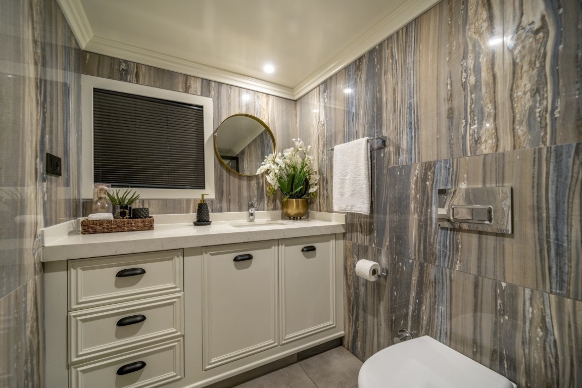 40 metre uzunluğundaki teknemiz, 2 master, 3 double ve 1 twin olmak üzere 6 kabininde 12 misafire kadar konaklama imkanı sunmaktadır. Beyaz ve ahşabın uyumu ile şık mobilyalı, ferah alanlar sunan ebeveyn banyolu kabinlerimizde, klima ve tv de bulunmaktadır.